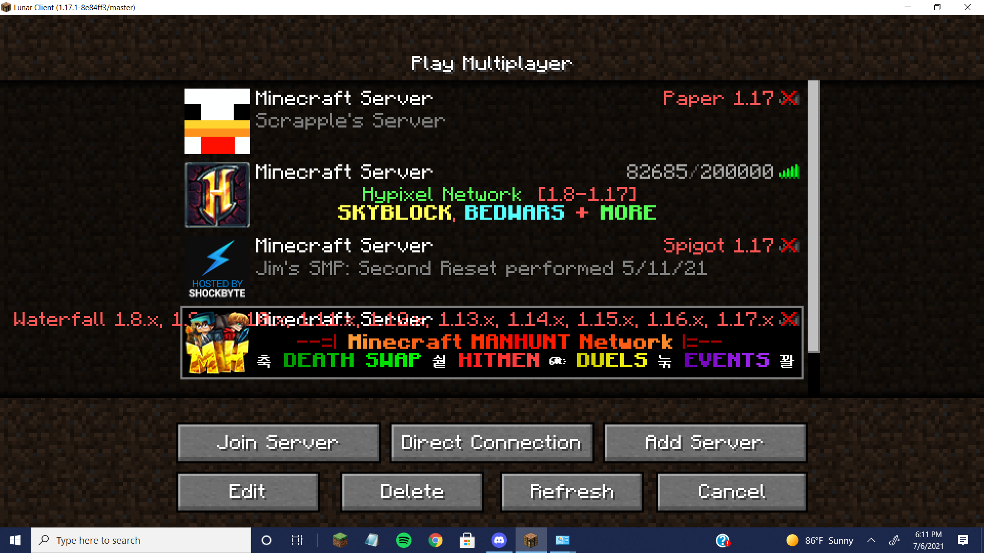 When i try to join a server in 1.17 whether its lunar client or normal minecraft it will say im in an outdated version. Ive tried uninstalling, signing out and back in, switching my account, resetting internet connection but none of it works. Any solutions