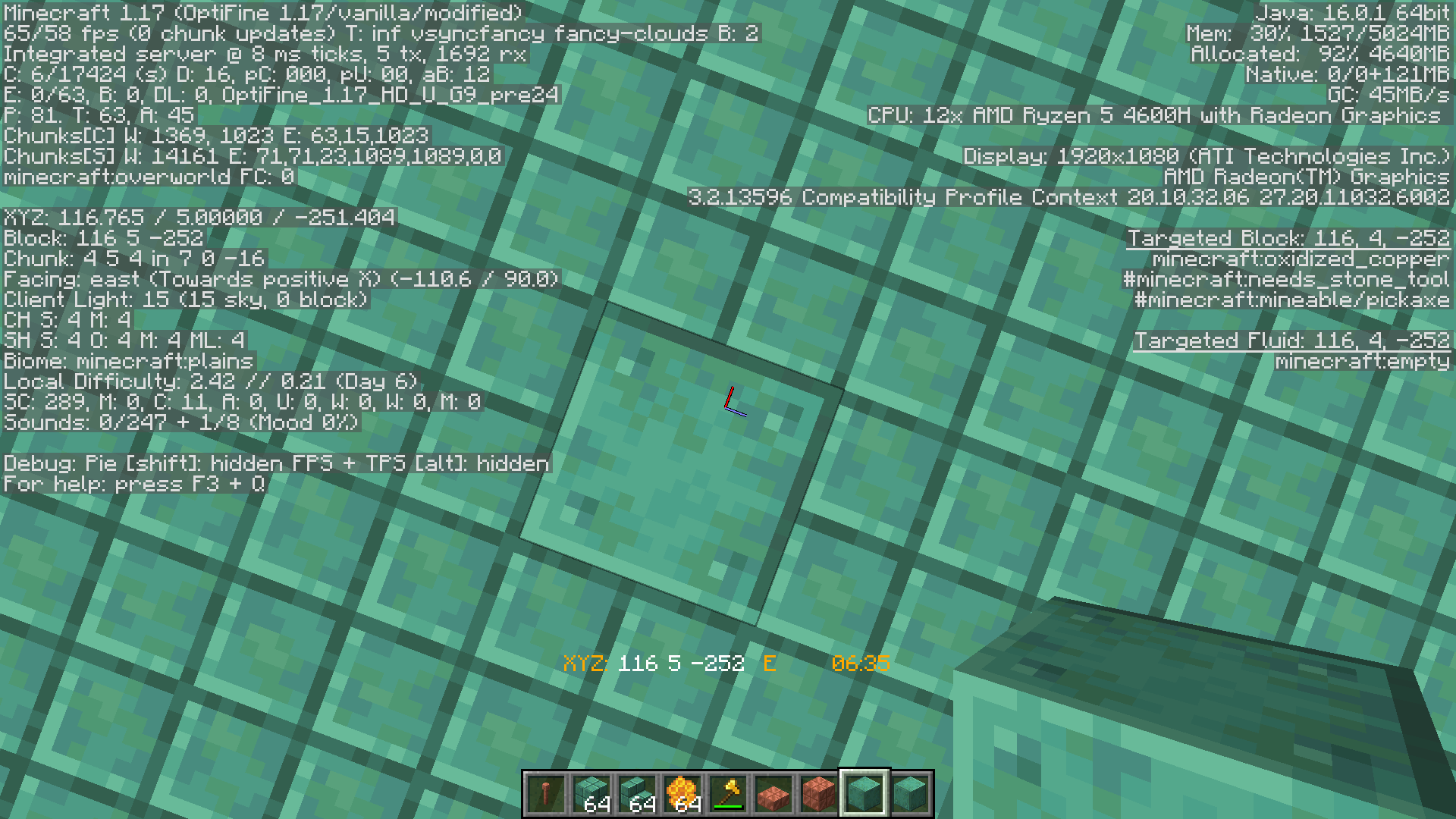 1. Create 2 copper block testing areas. I'm using 7x7 ones.