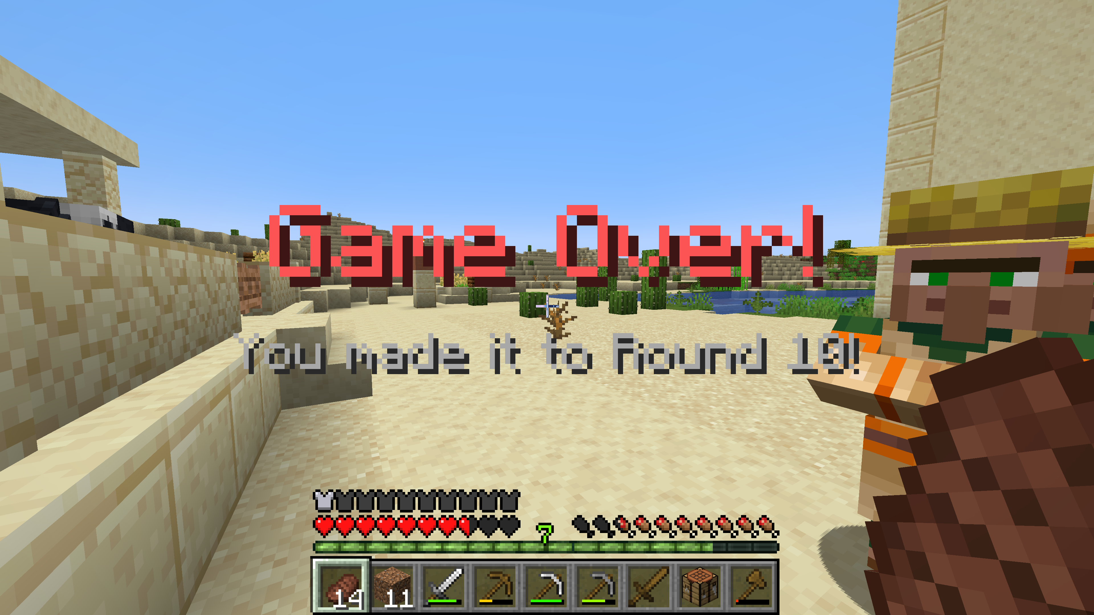 The amount of time the text stays on screen seems to be dependant on how long the server displays it for. For example, the game over text from the screenshot attached stayed on screen for around 5/6 seconds, a text introducing a minigame appeared for barely a second, while a countdown didn't appear at all (likely beacuse each number stays on screen for a second, not giving me enough time to join a world and see it). Waiting instead of joining a world immediately will cause the text to not appear.