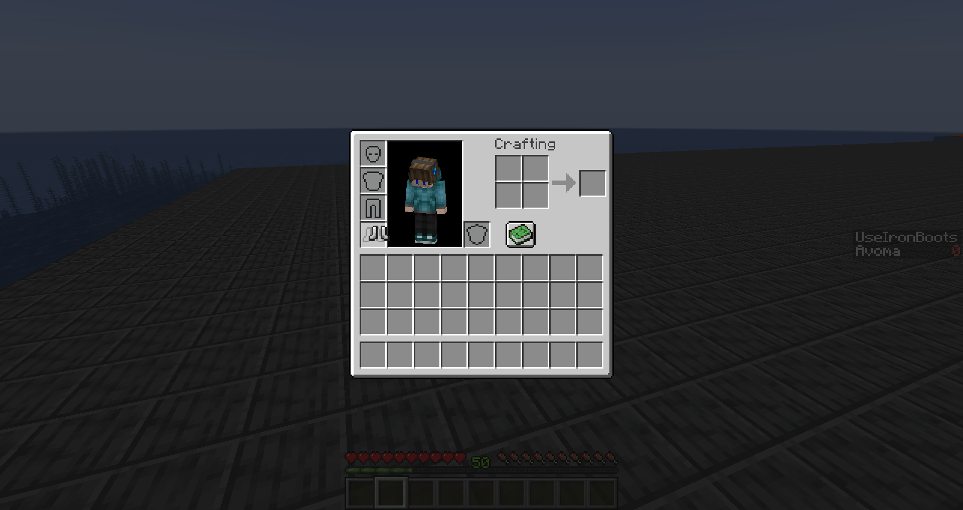 Create a scoreboard objective for tracking when you use some iron boots and set it to display on the sidebar by using the commands provided below.