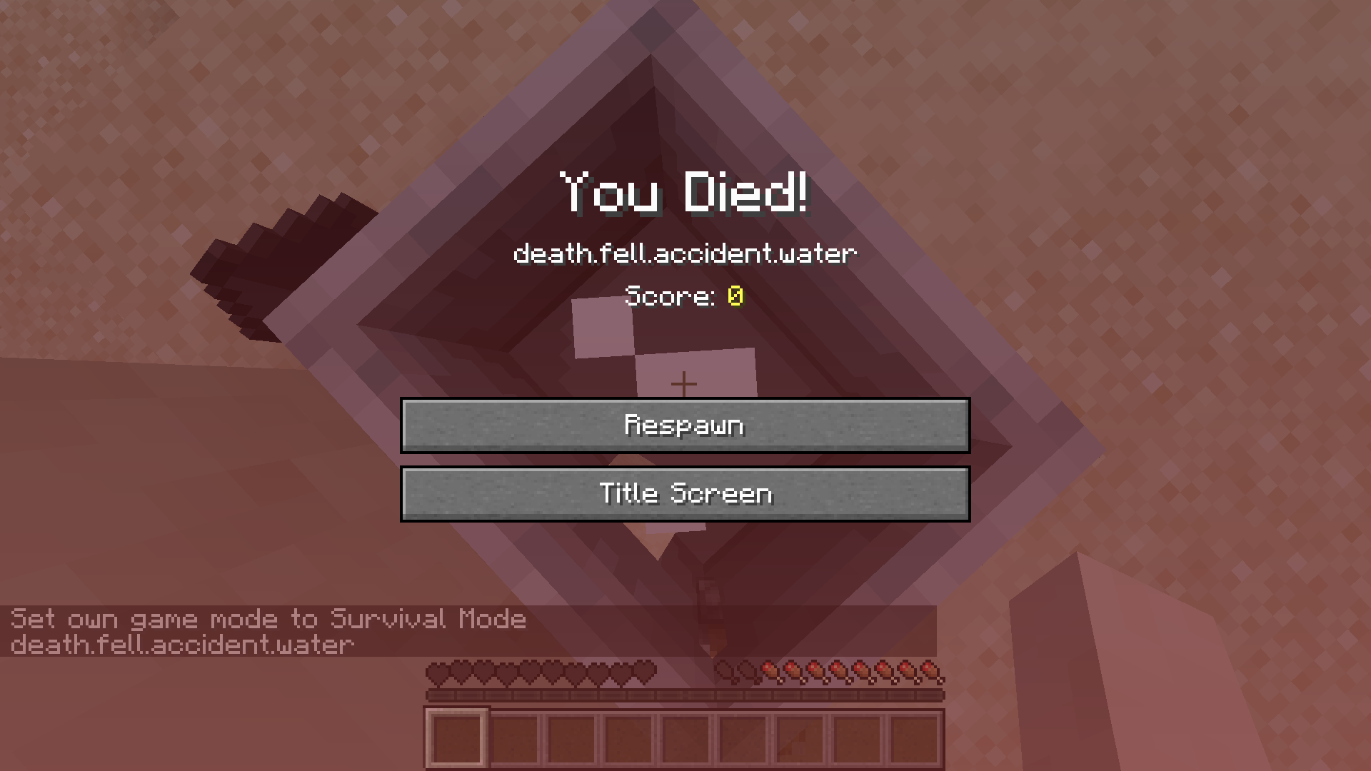 A death message that occurs when the game thinks the last block you fell on is water while taking fall damage