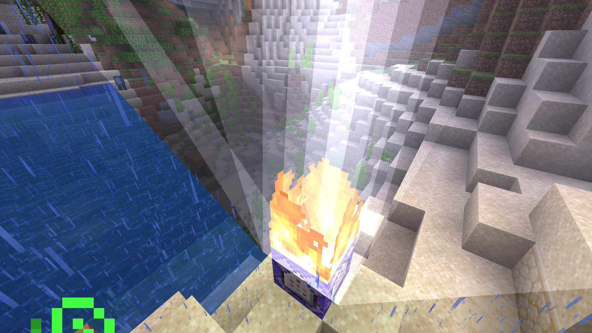 You can't see the water through lightning, but the creatures in the water can see it normally