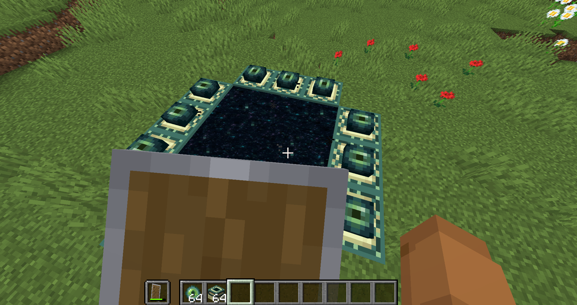 When you jump to the end portal with an activated shield, you can sprint with it and it works as from an activated shield.