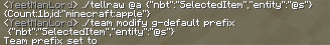 /team modify Name prefix {"score":{"objective":"scoreboard name","name":"player/entity"}}NBT json doesn't output anything