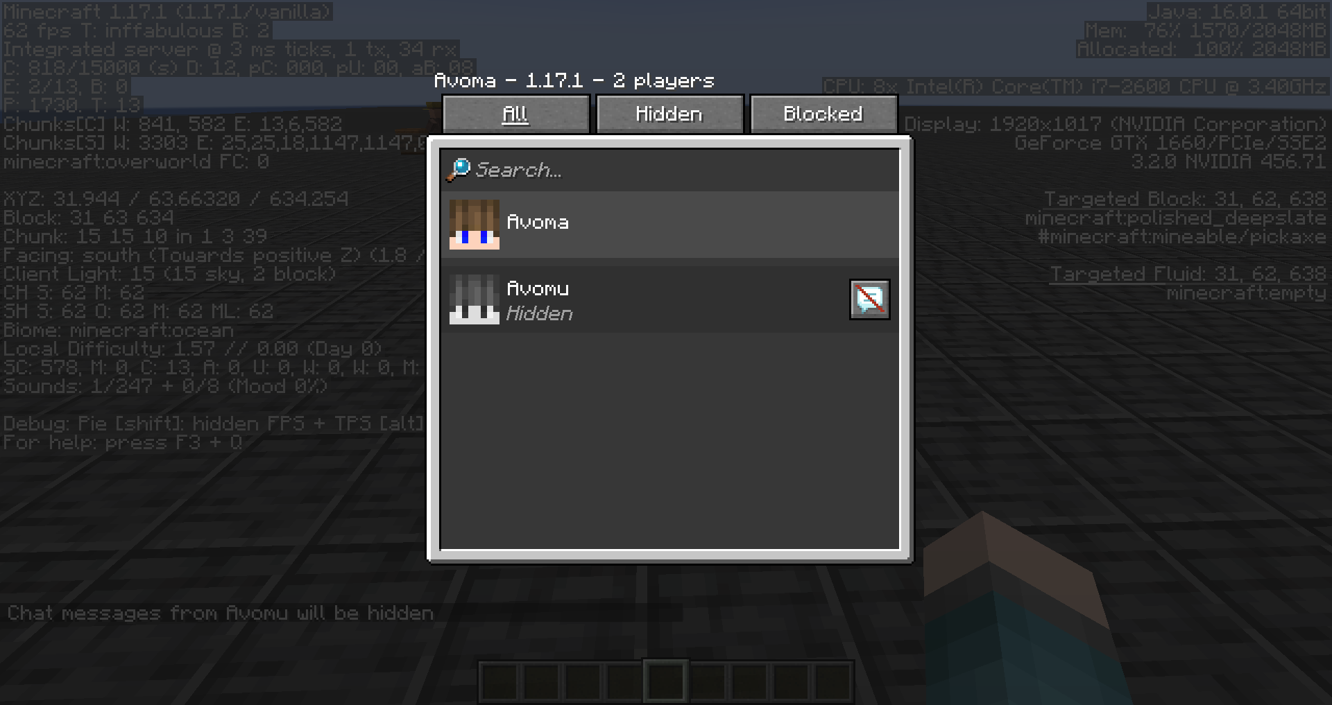 Take note as to whether or not the hide and show messages buttons in the social interactions menu are deselected upon interacting with them.