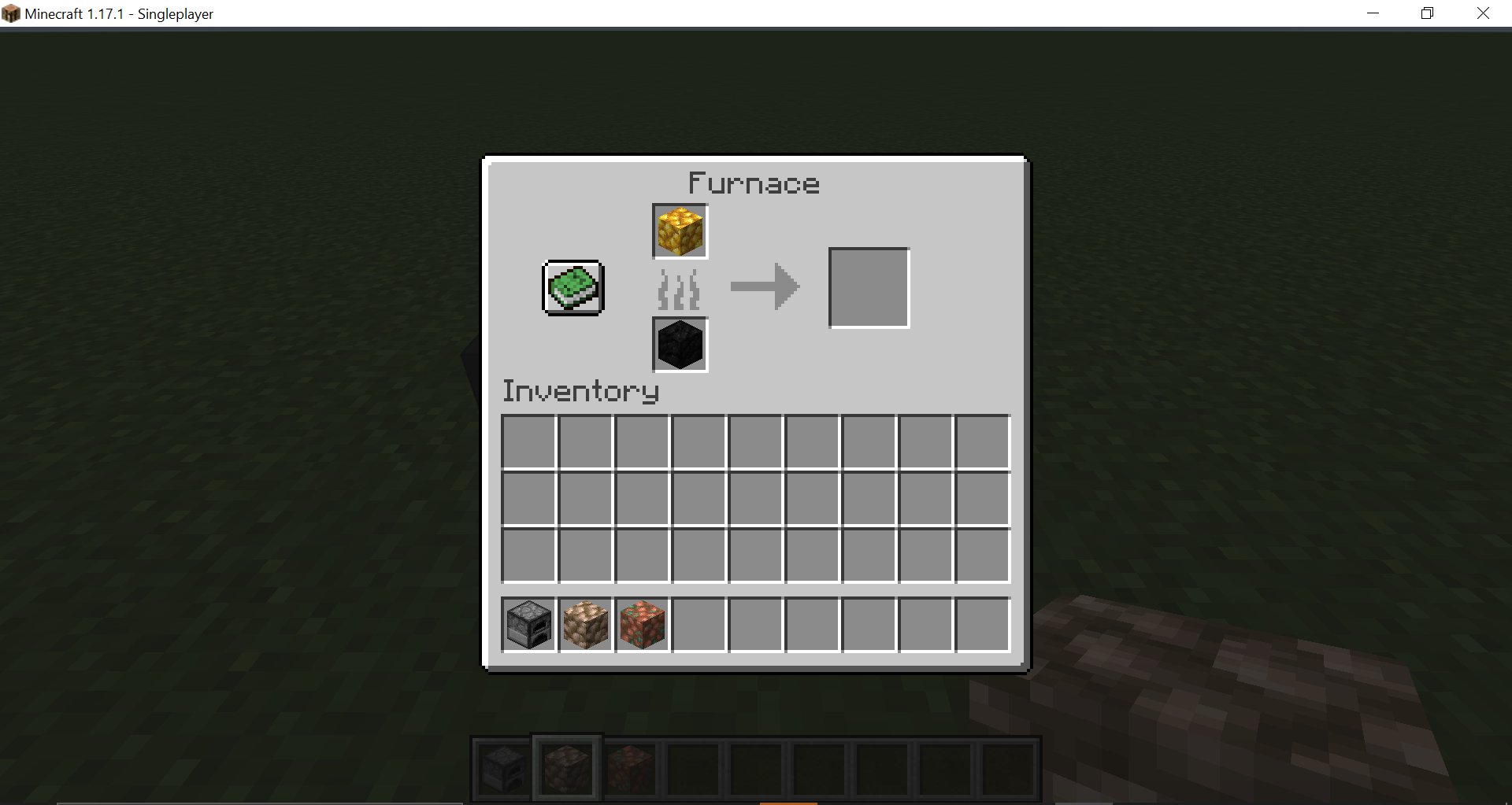 Putting the Raw Iron/Copper/Gold Block into the furnace with a fuel does not create a regular Iron/Copper/Gold Block.