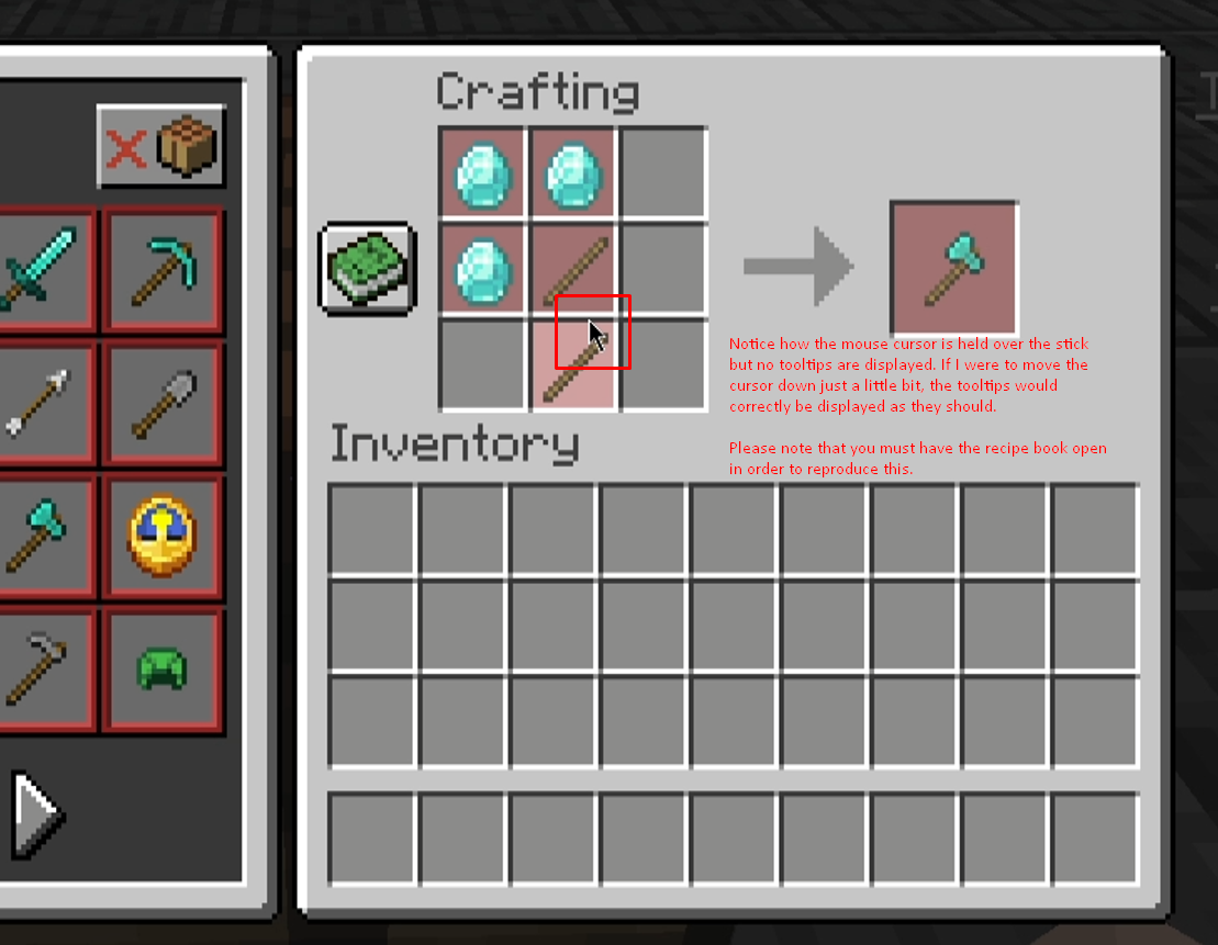 Recipe book previews do not have full size tooltip hitboxes.