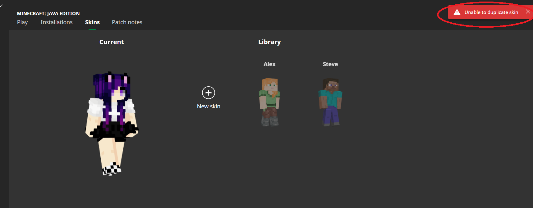 Not saving the skin keep say unable to duplicate skin how do i fix this i made a mojang account to get this fixed i use my other account but the person was no help at all ...