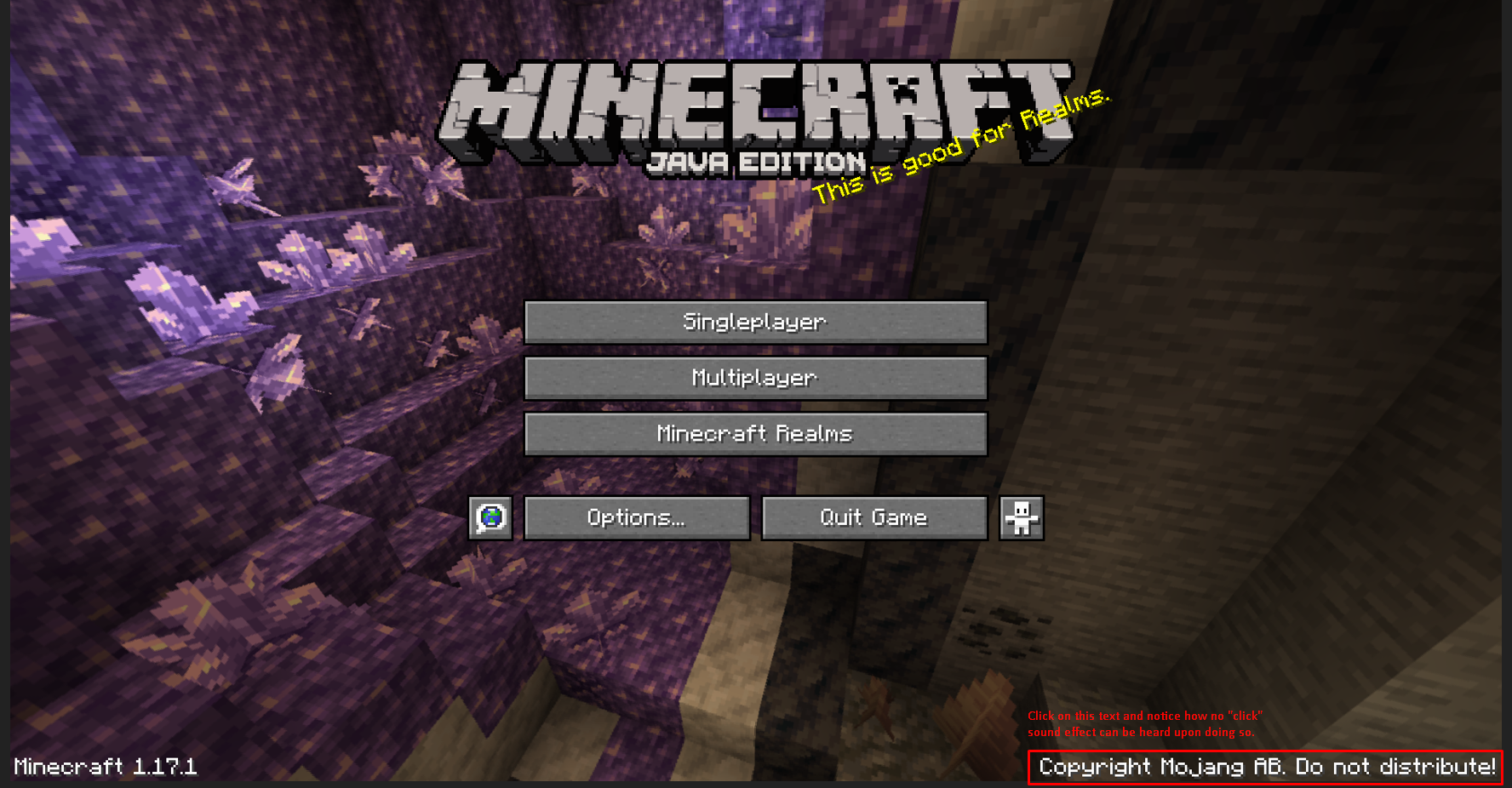 Take note as to whether or not the minecraft:ui.button.click sound can be heard when clicking on the credits button in the main menu.