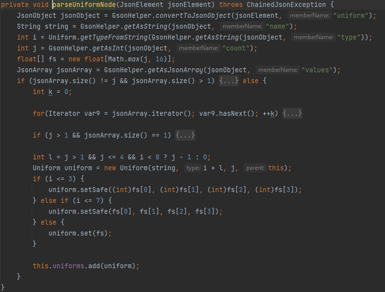 adding this line to the uniforms section of the shader json causes my custom shader to fail to parse: