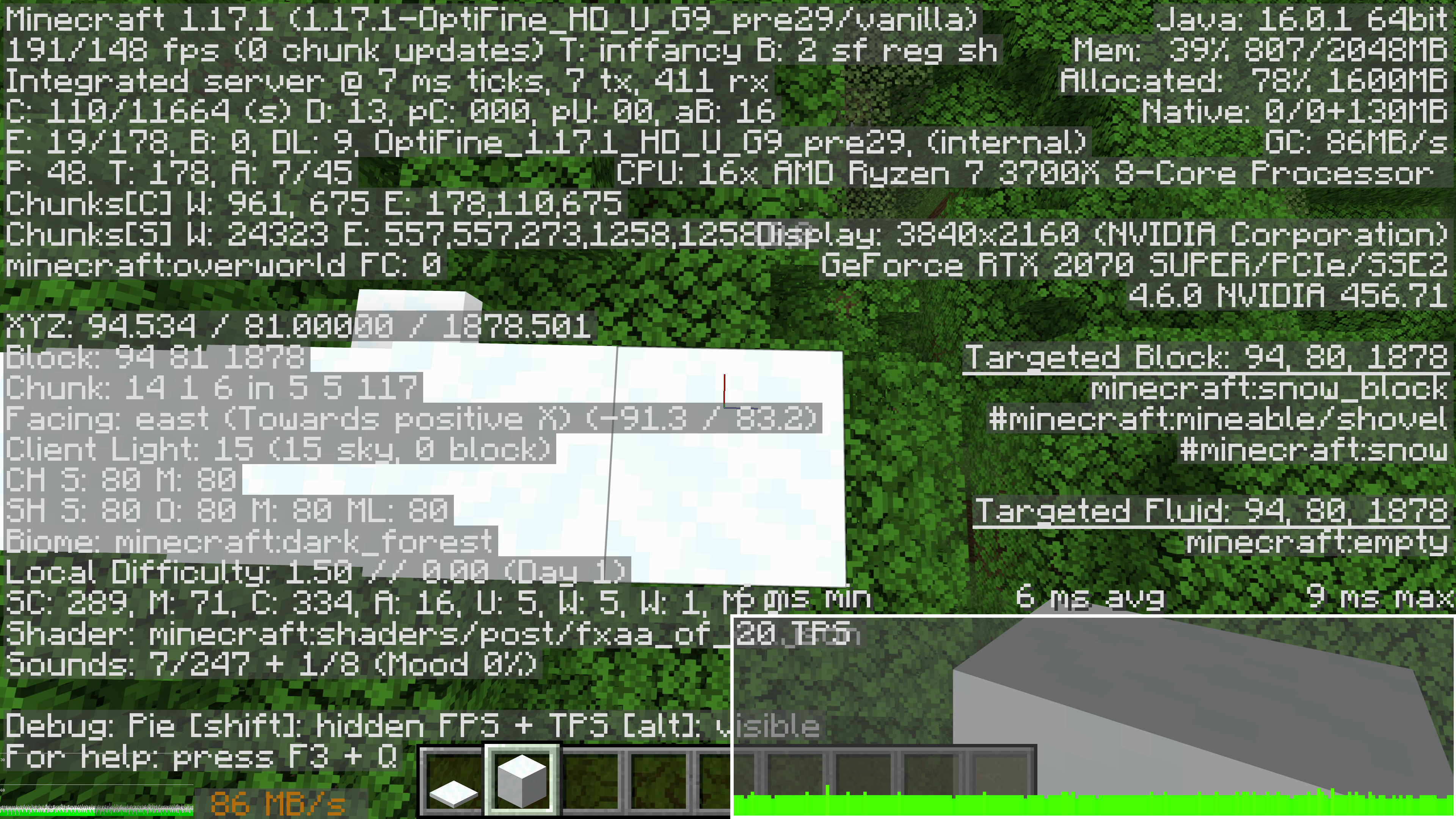 I was watching a "the longest stairs in Minecraft" video and someone said one snow layer is 0.128th of a block (which is totally wrong lol) so I proved him wrong and started messing with snow layers. I made stairs out of them just to see what would happen but then I put 8 layers of snow and the cords showed 0.875 (a full block will be 1) so 8 layers are not a full block wich is weird because the hit box shows it is
