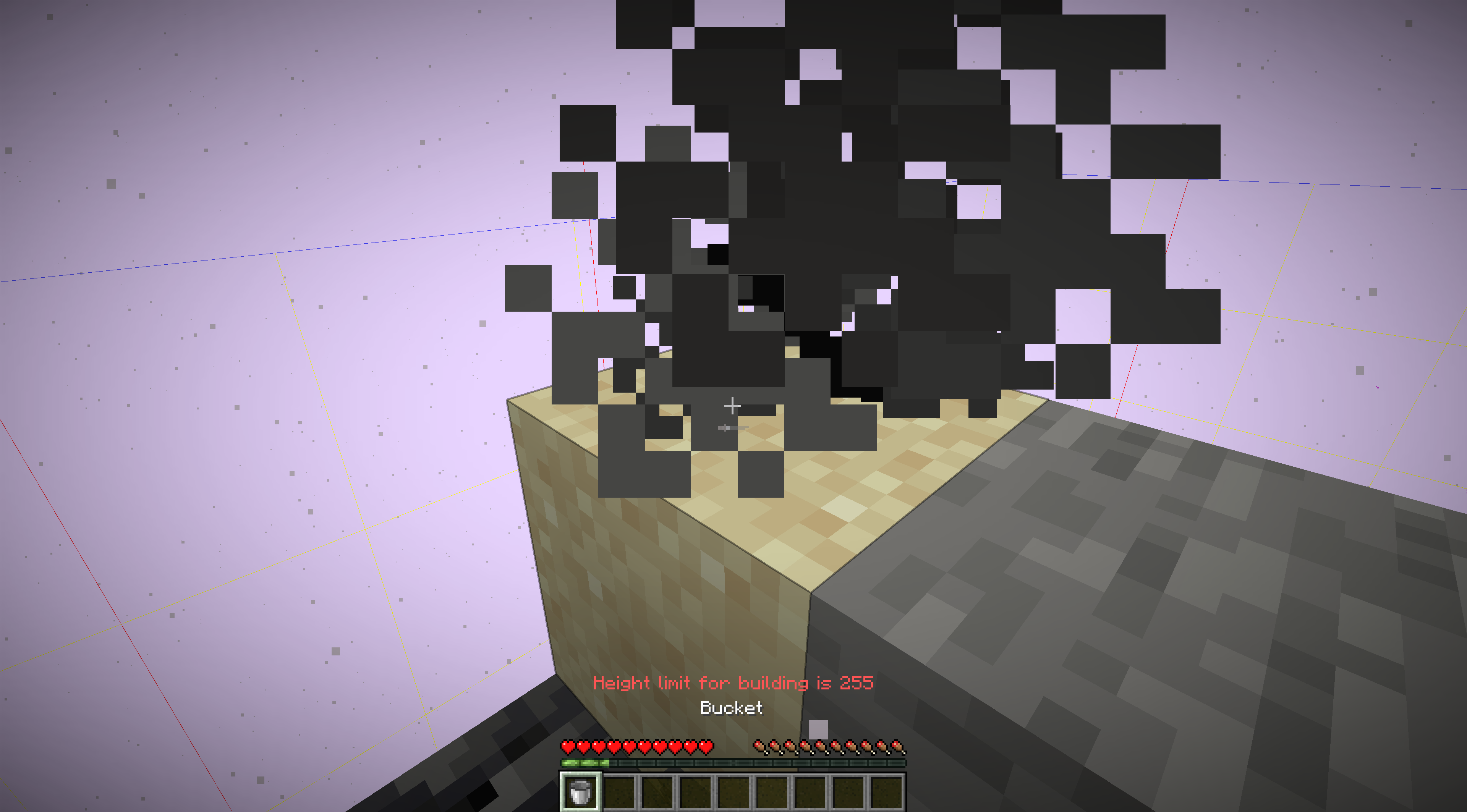 Now place the bucket on the top of the stone block (at height 256)
