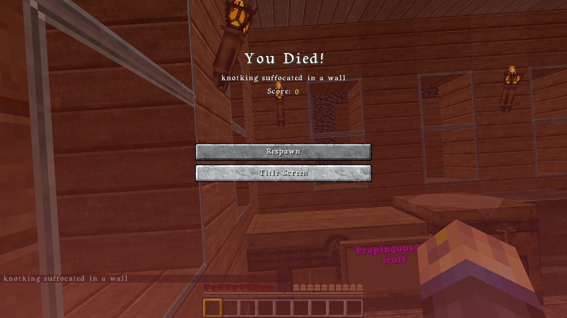 Two other players experienced the same death "suffocated in walls" recurring death.