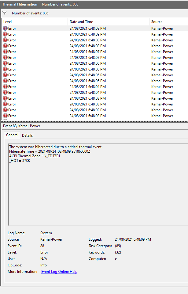 This cycle causes my laptop to overheat severely as my RAM is being cycled every second of Minecraft being open. This causes a thermal hibernation. Whilst my computer is trying to hibernate, it is still overheating which causes the thermal hibernation twice every second in Event Viewer.