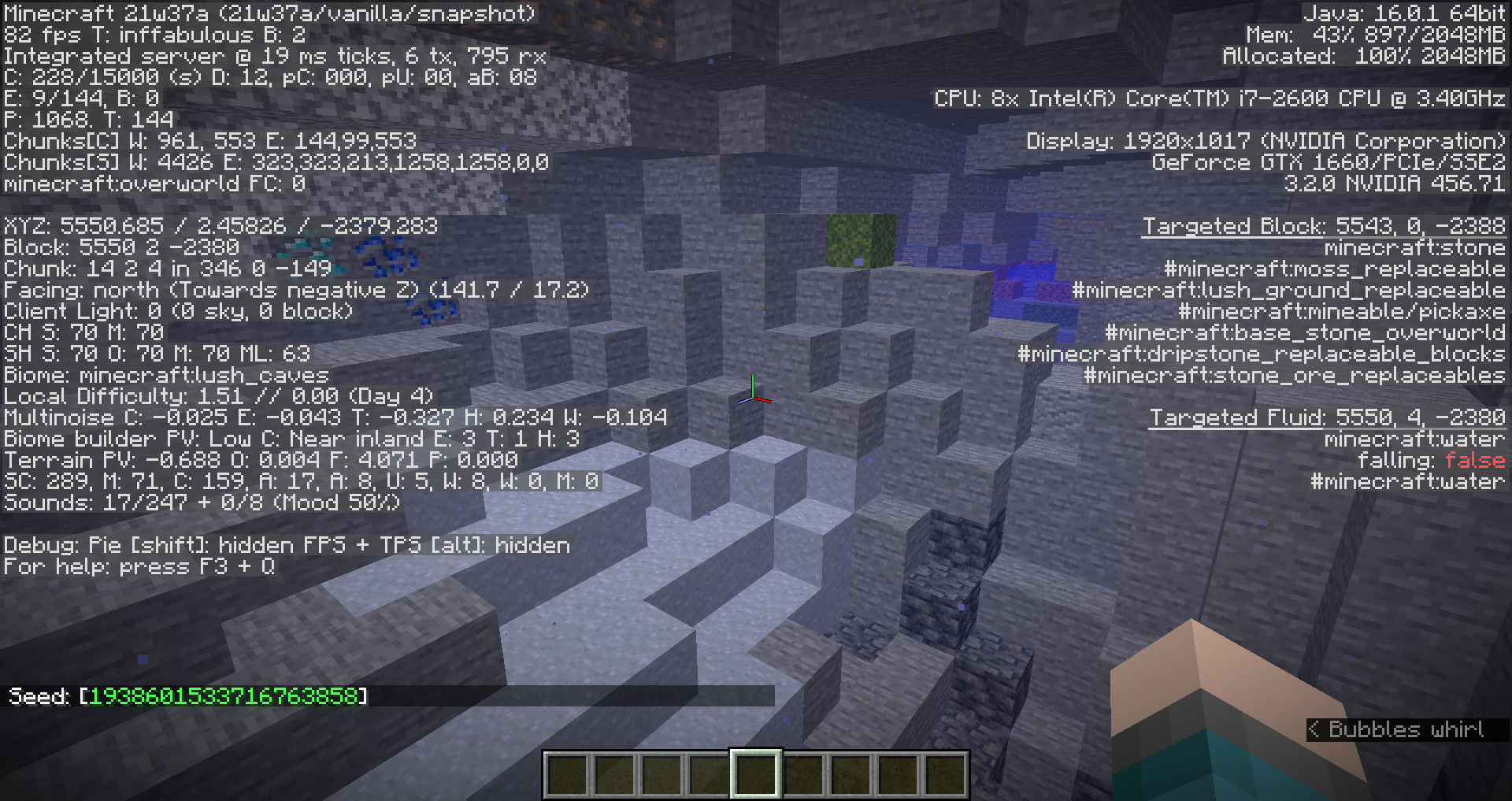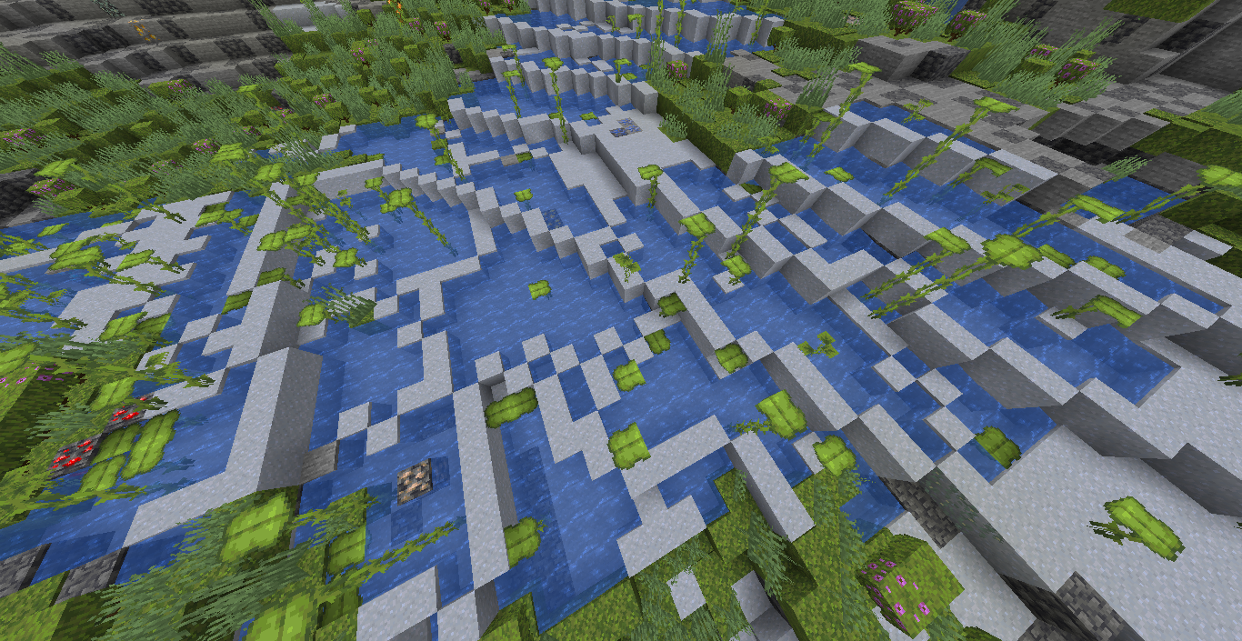 ❌ Notice how most of the terrain underwater is devoid of lush blocks.