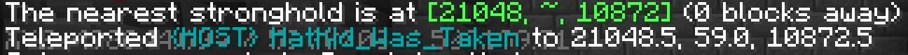 I was going to locate a stronghold while at my house (Which is at worldborder) and it said "The nearest stronghold is at [21049 ~ 10872] (0 blocks away)" and my house beneath it is void and above is sky, I teleported by clicking the coords and I checked my coords, nowhere near my house. (My house coords are atΒ 498044 59 500107)
