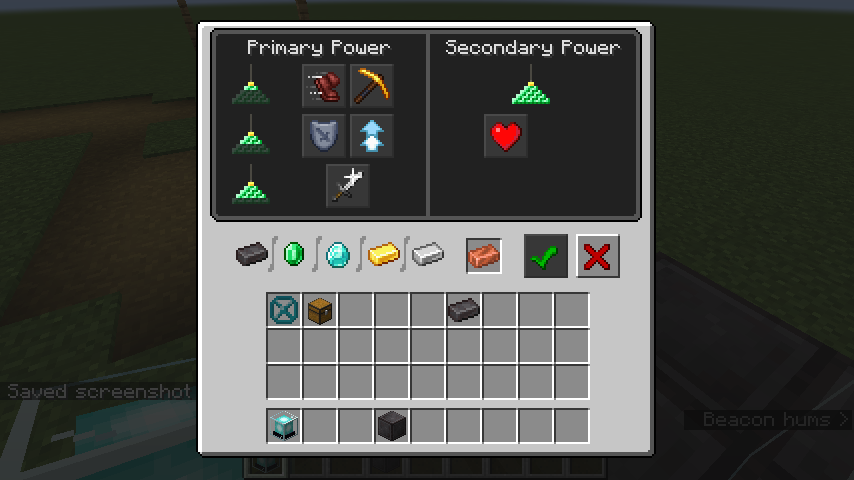 Apply the attached data pack to a world, and open the beacon UI. Then attempt to place a netherite ingot inside the payment slot. As expected, the slot forbids placing it inside. Then add a copper ingot, and note that it's accepted as a valid payment. This is to be expected, as the data pack replaces netherite with copper as a valid payment item. Despite this, the item sprites shown to the left indicating valid payment items remain the same - the UI falsely infers that netherite is still a valid item to use in beacons, and omits copper.