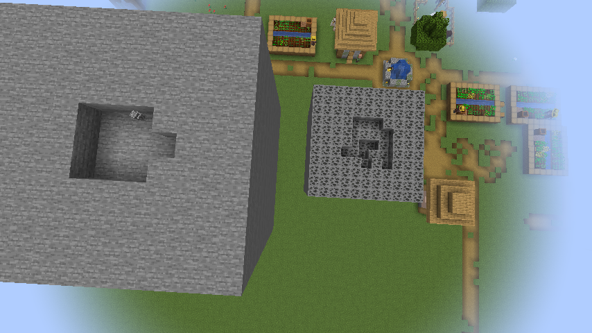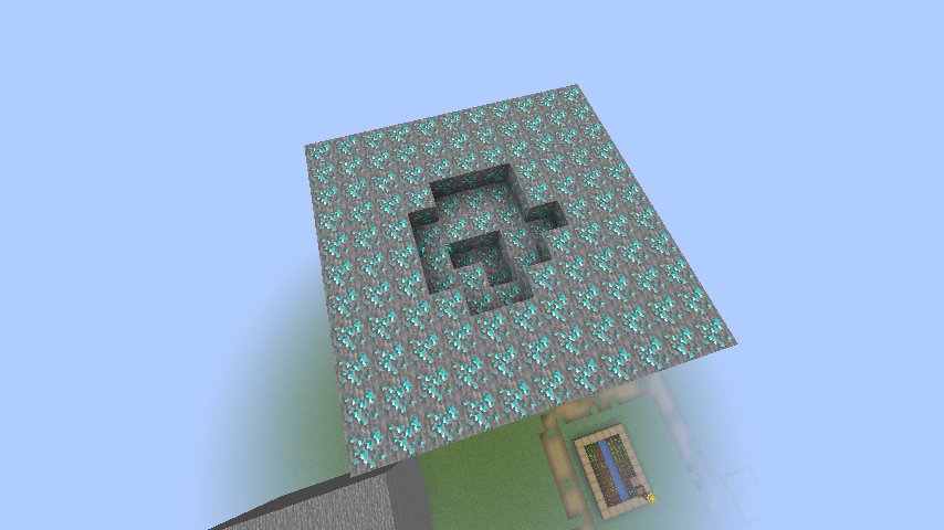 /fill ~-1 ~ ~-1 ~-9 ~5 ~-9 minecraft:stonePlace some TNT on top and in the center of the two big blocks of stone and diamond ores. See setup.png