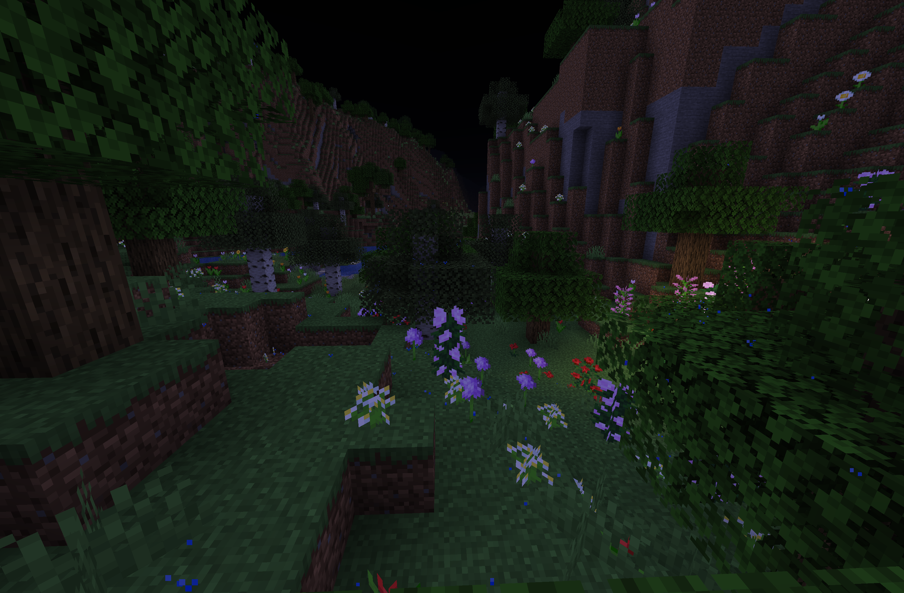 Occasionally, certain parts of the world will not have rain. The screenshots provided are inside a flower forest biome, wherein there are no raindrops yet there are particles on the ground indicating rain. In other parts of the flower forest, there is rain, but in certain spots there is simply none.