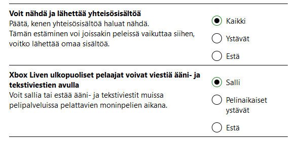 1. I checked microsoft account parental settings and the chat is allowed there (screenshot below)