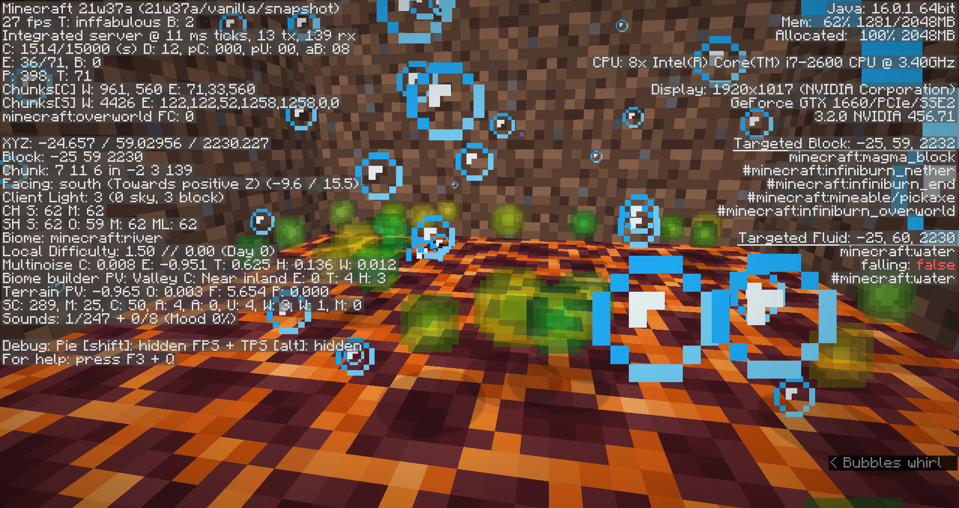 When an experience orb or dropped item is sucked into a magma block bubble column (it's expected to because it's an entity), it doesn't stay on the magma block. Instead, it starts to flow up, but then the magma block pulls it down again, making it shake.