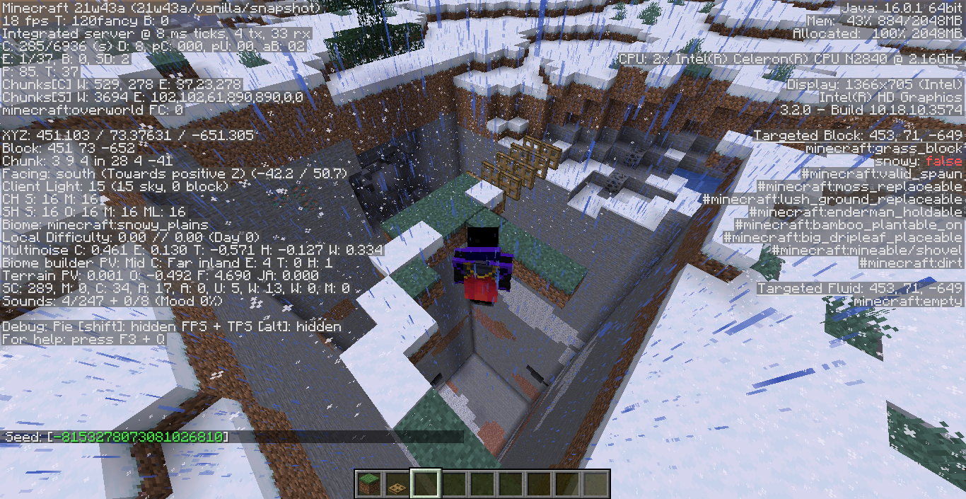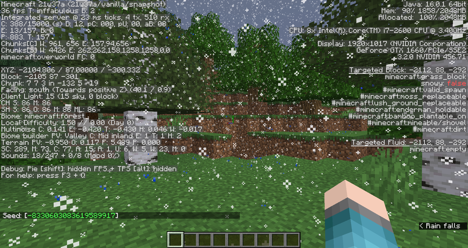 Seed: -8330603083619589917 Coordinates: /tp @s -2108 94 -298Do /weather rain