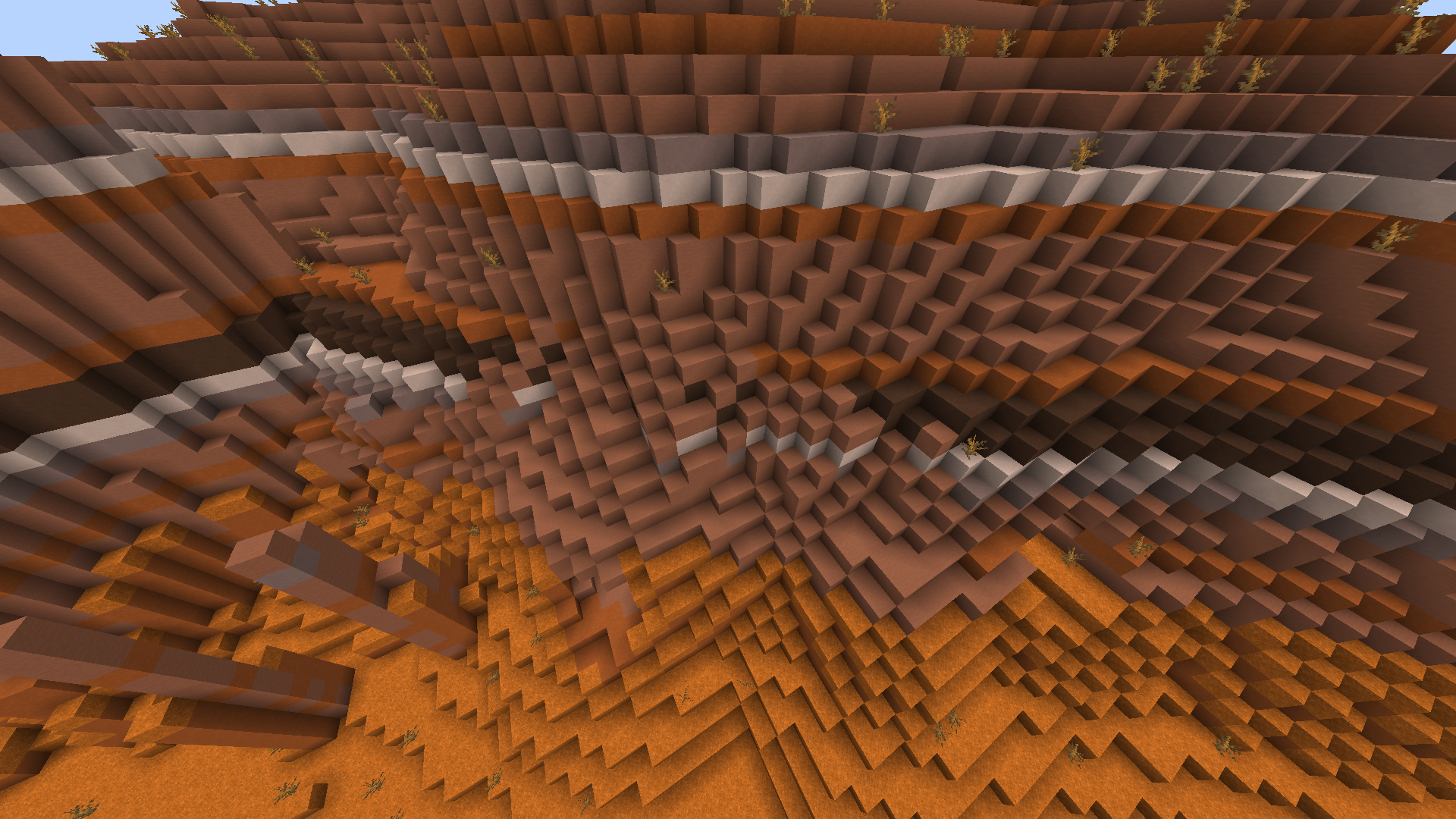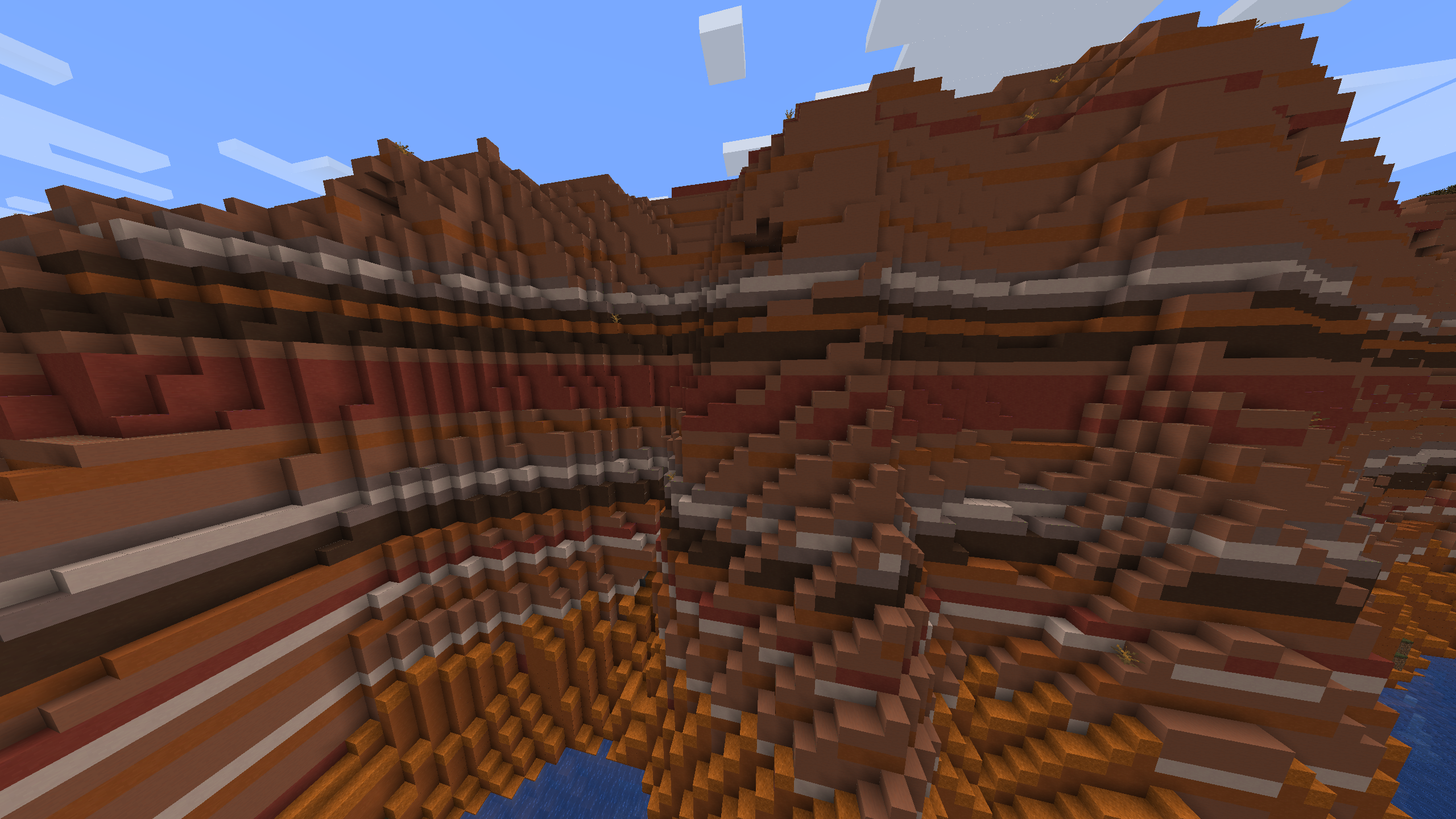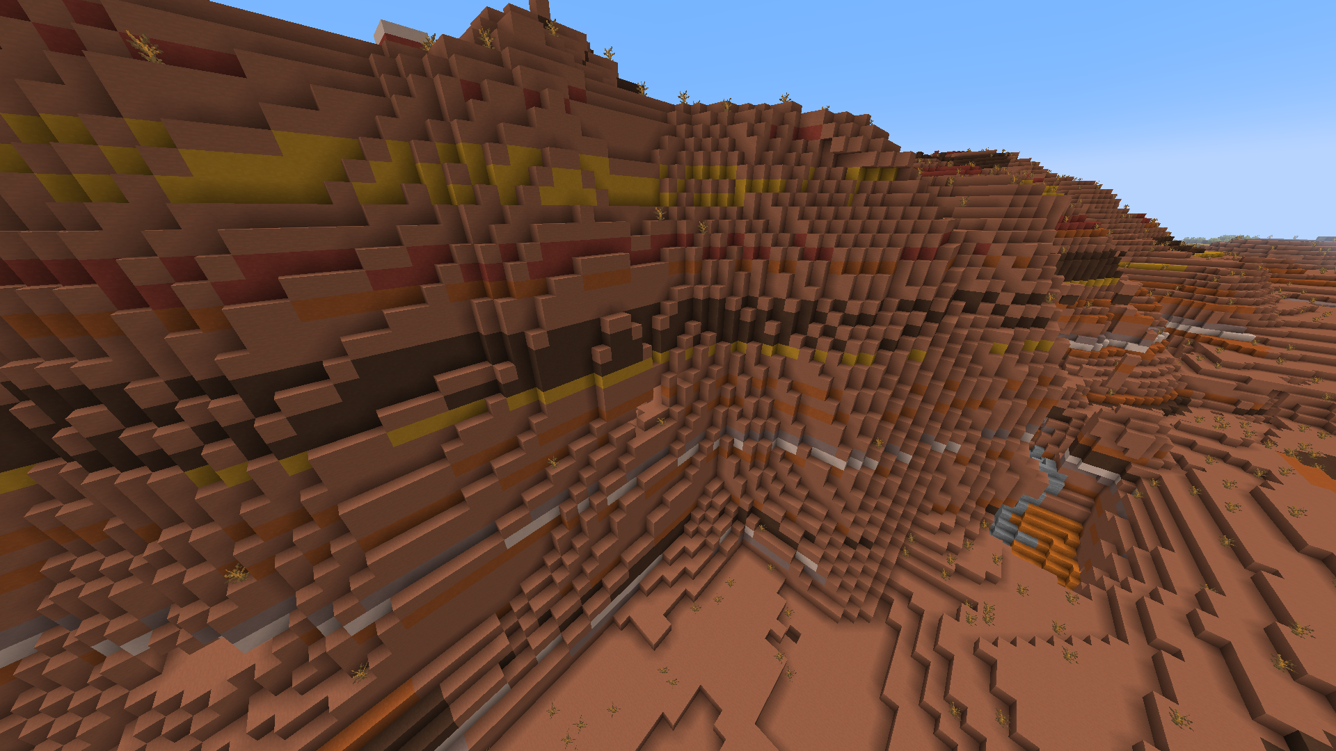 Sometimes the terracotta that generates in badlands biomes doesn't match with the color of the y-level it is on, causing the terracotta to generate as regular terracotta where it would normally generate as white, brown, etc. This is a lot more noticeable when the badlands generates as a large hill, which it normally does.