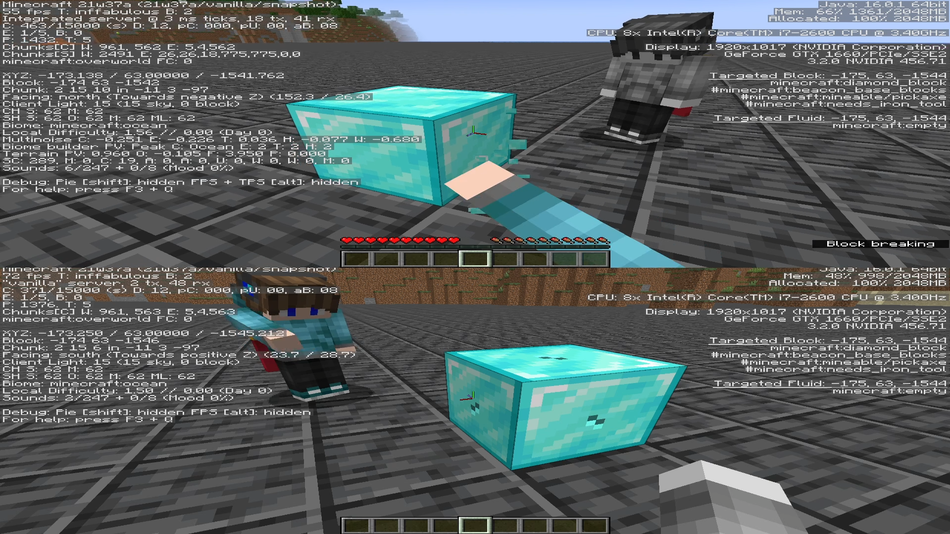 Get "Player B" to start hitting the side of the block that "Player A" is looking at.