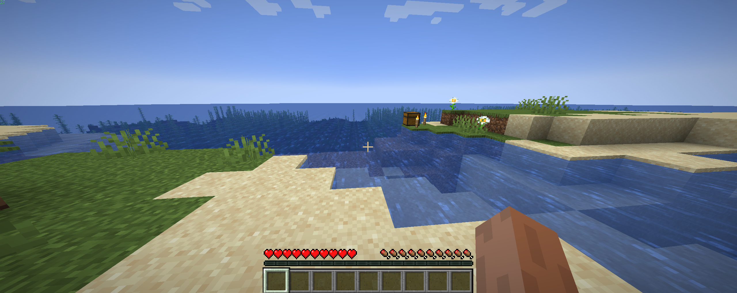 (I'd say it is a low priority bug) I just created a new world and when I spawned, the bonus chest was in the water. I tried to recreate the bug and once the chest was in land, but others 4 times it was in water (attached screenshots).