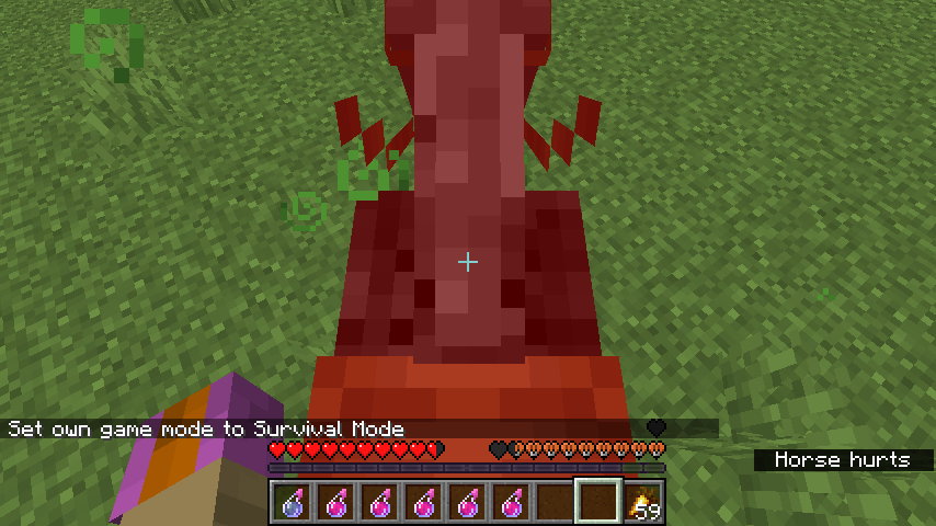 icons.png appears to have two more textures dedicated to the horse's health bar, which are lighter versions of the horse heart, probably intended for displaying when the horse takes damage analogously to players. However, they never seem to display in game, and the health bar just abruptly decrements instead.