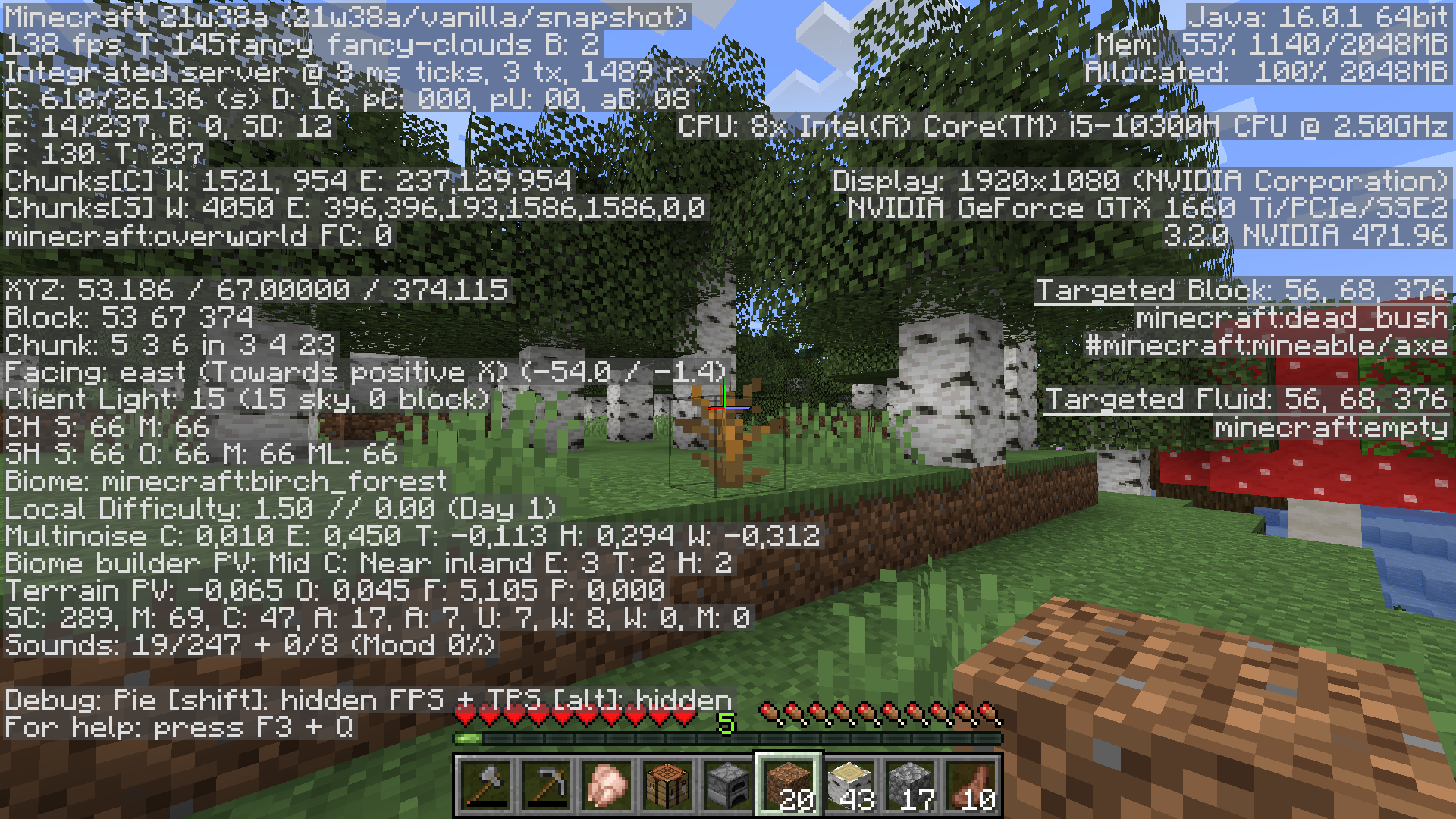 Found a dead bush generating in a birch forest which it probably should not.
