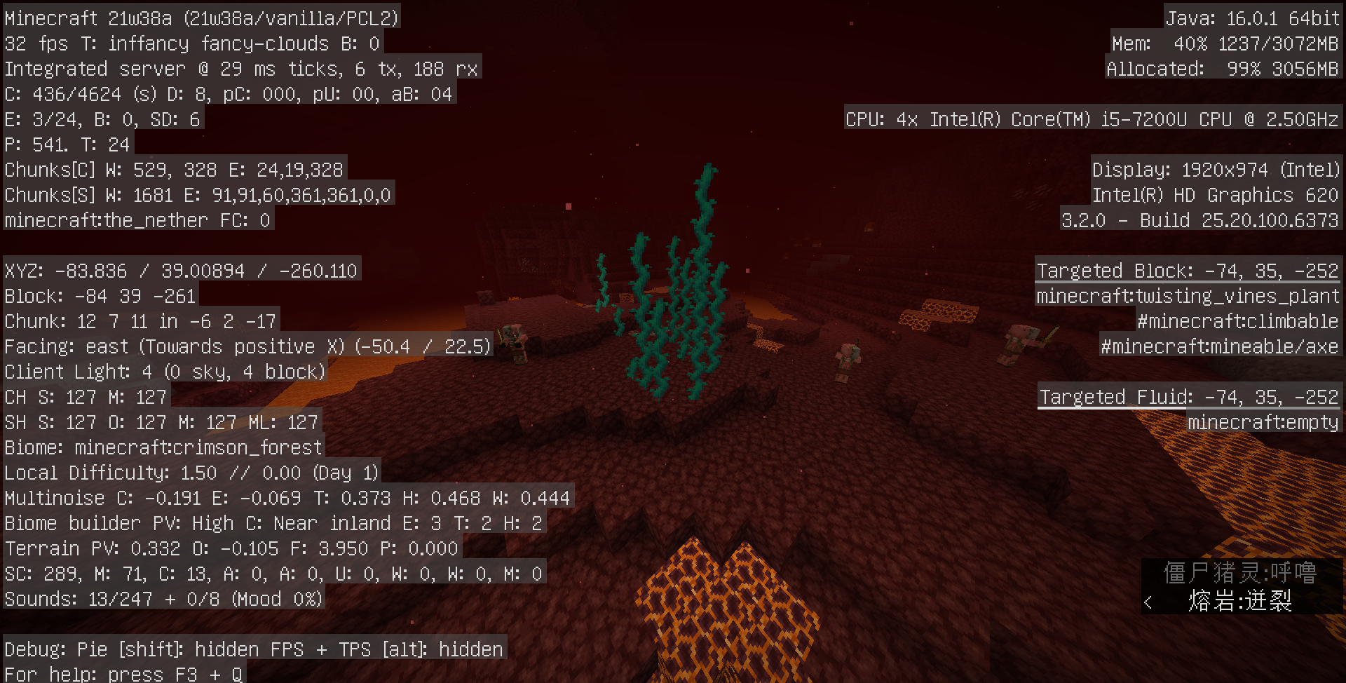 There are no Huge Fungi, Nyliums,Fungi in the Crimson Forest and Warped Forest,there are no Soul Sands and Soul Soils in the Soul Sand Valley