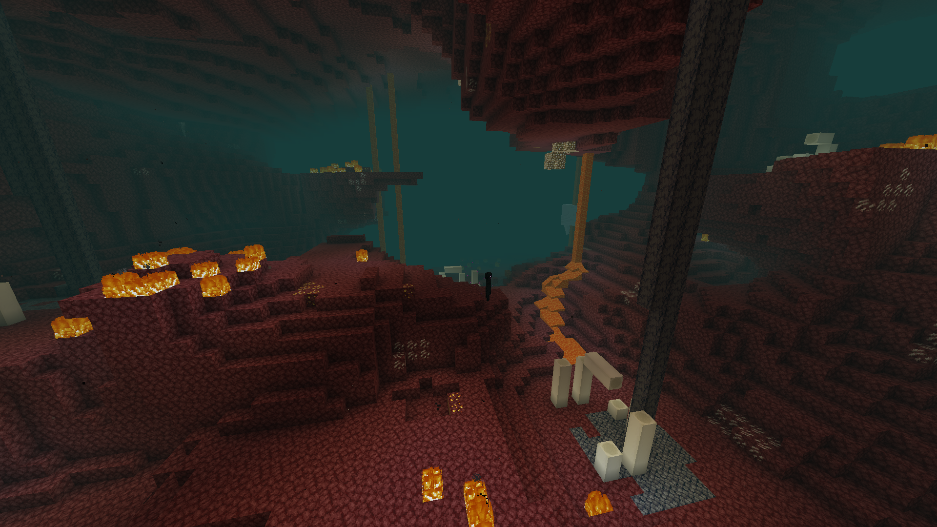 no Nylium or trees in either the warped forest or the crimson forest. no soul sand in soul sand valley biomes.