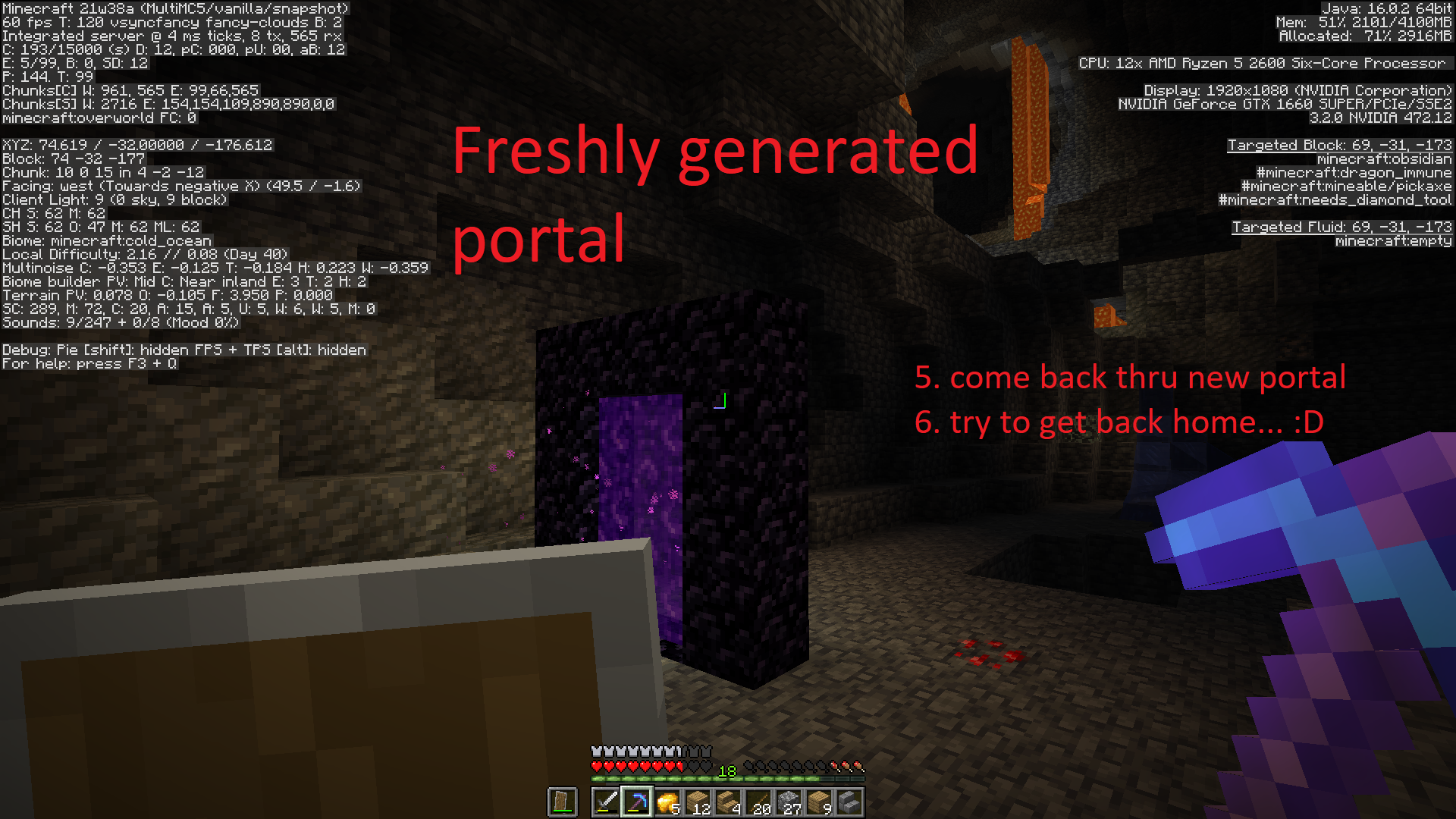 Coming back from nether to over world thru nether portal minecraft generates new portal and links to new portal not the original one used to get to nether.