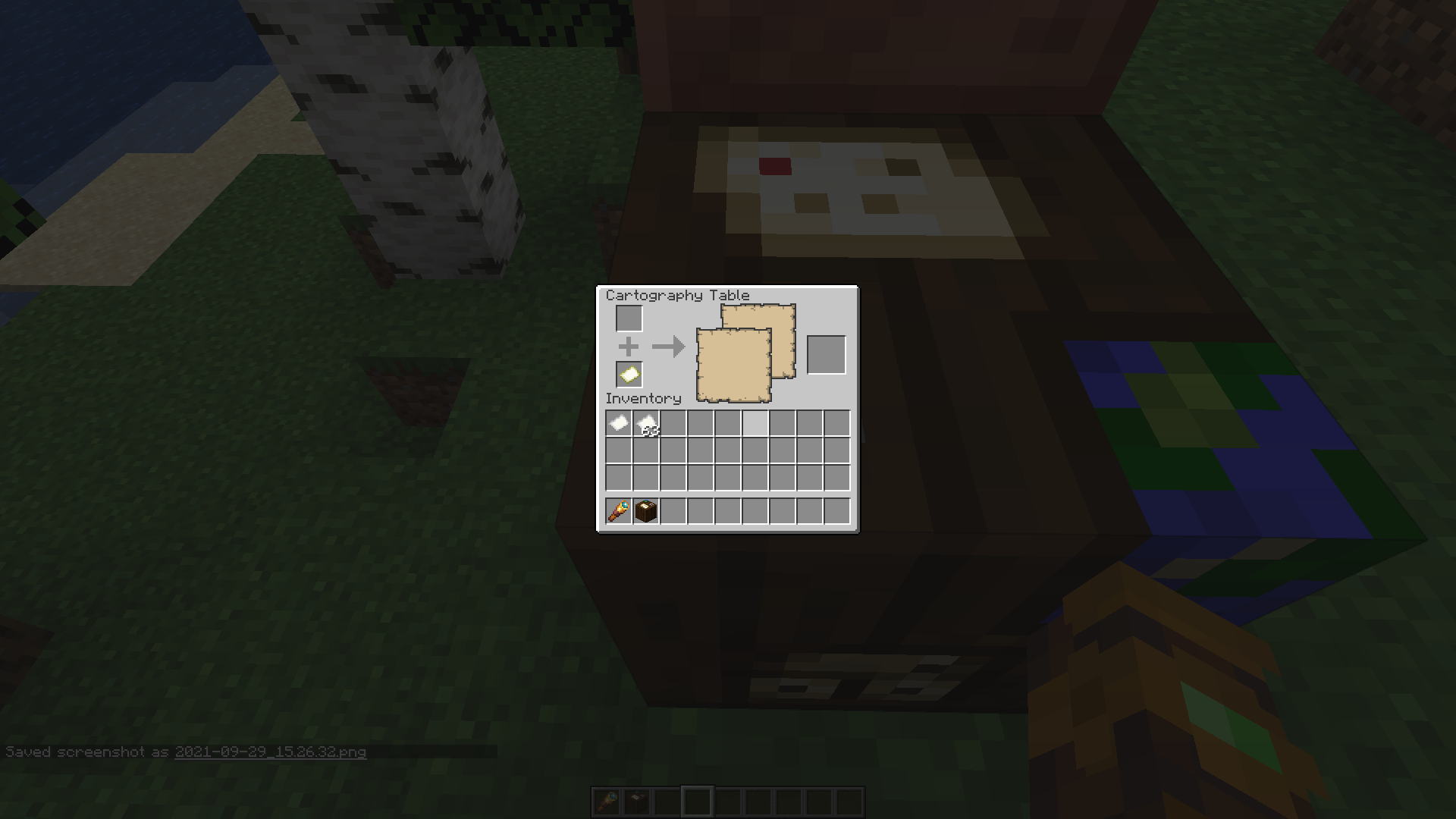 When using a Cartography Table to expand a map, the map or the paper can only be placed in the second slot. When placing the paper it appears to expand a map but you cannot remove it because there isn't a map in the table. Placing the map in the table appears to do nothing.