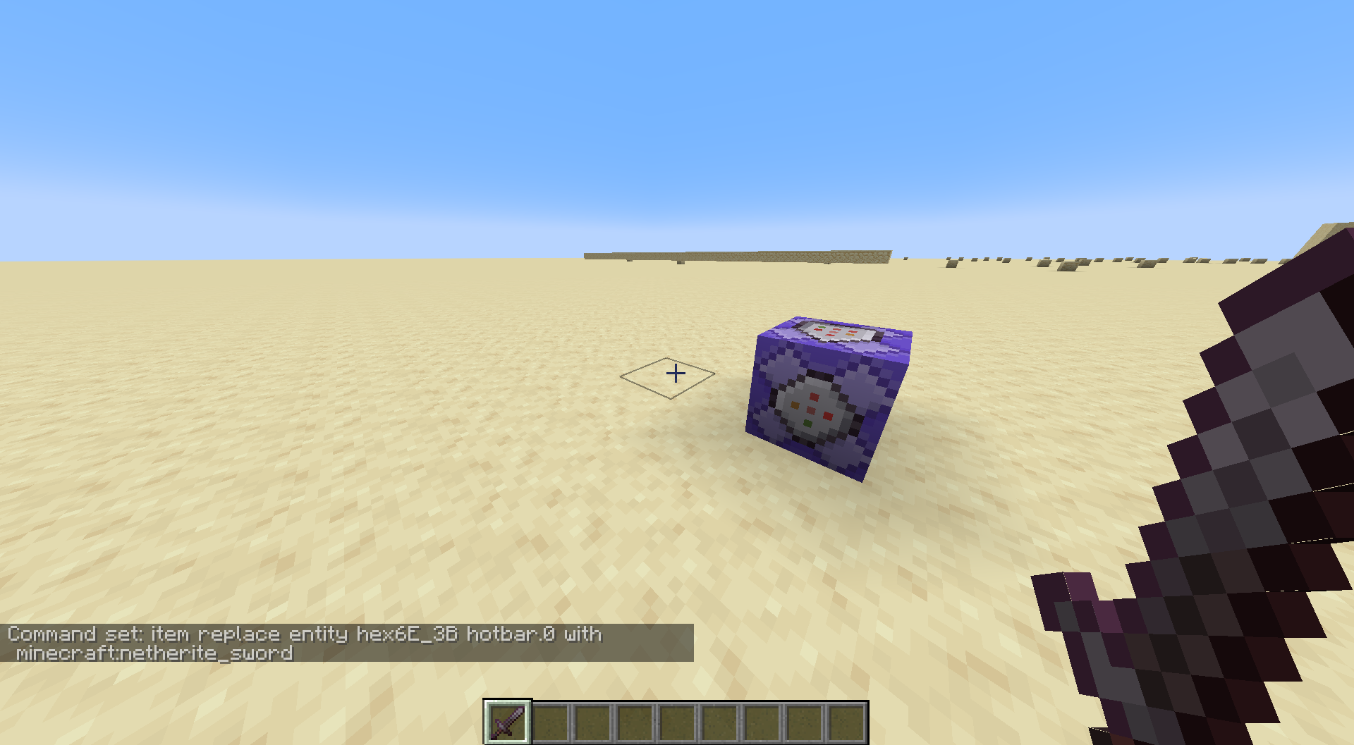 When you replace the slot with a sword a weird effect will appear. If you try to break a block it will make a break sound and particles but it will be replaced instantly by the server because you cant break blocks with a sword. (In singleplayer the server of the singleplayer world)