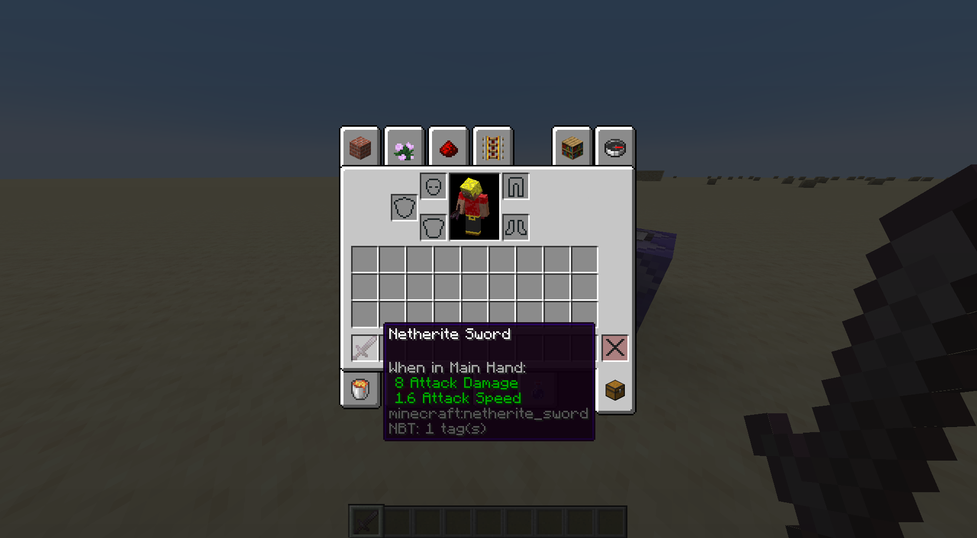 /item replace entity @p hotbar.0 with netherite_swordPress left shift and left click on the item while the inventory UI is open 3 times in rapid succession.