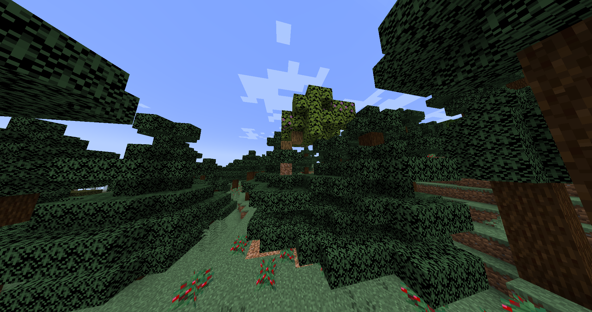 Azalea tree spawining on spruce tree. It added rooted dirt below and above spruce tree, then added azalea tree. Seed:111111222222 XYZ: 3159/72/4146