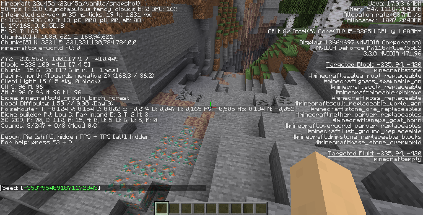 Find a mountain biome that has a dripstone cave underneath it. Note that this issue only happens on some occassions.