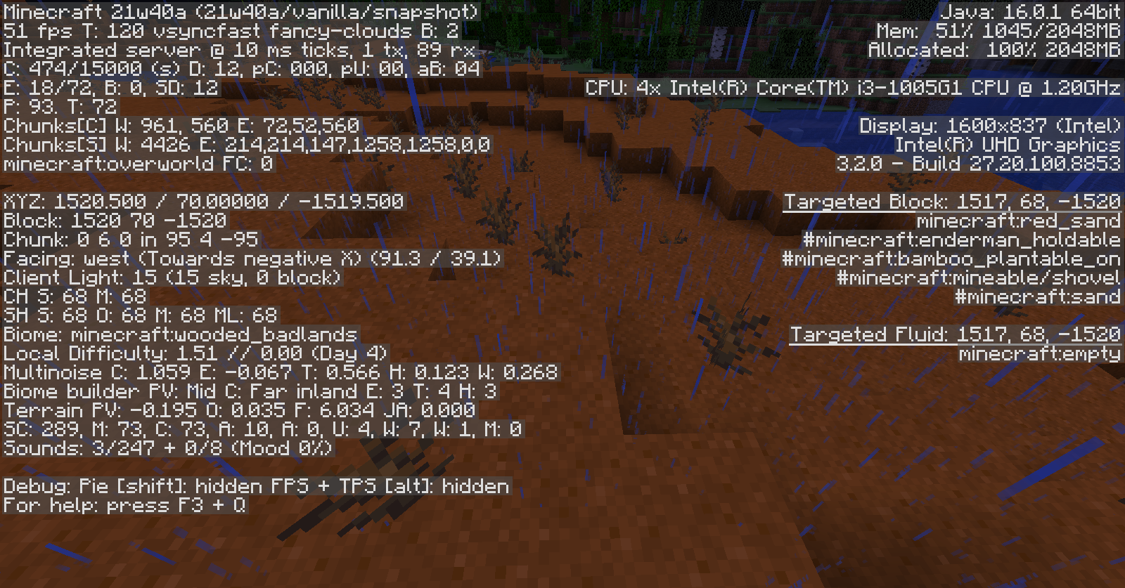 Despite being a wooded badlands biome, it rains over this block.