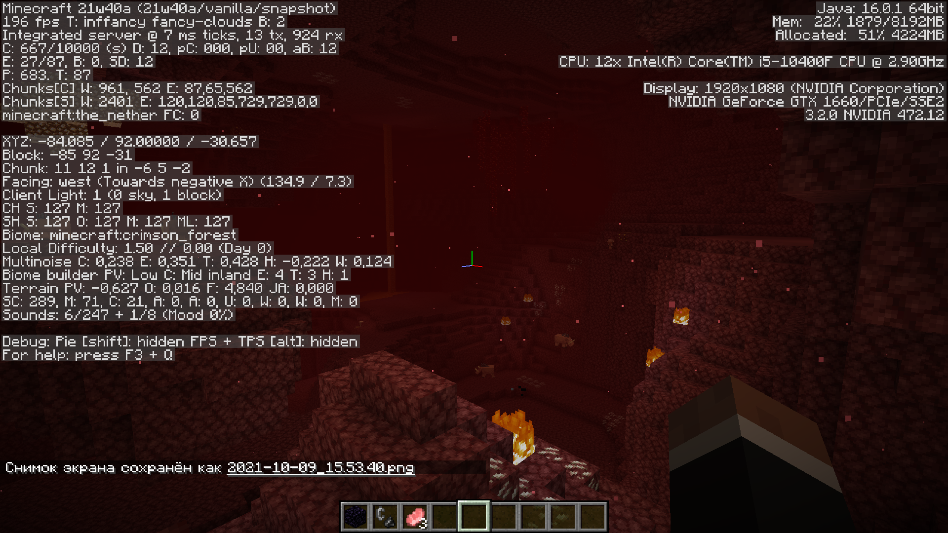 For some reason, in nether biomes, like Crimson/Warped Forest and Soulsand Valley, are not generating blocks, like crimson/warped block, crimson/warped fungi, soulsand. But still, in those biomes still generating Warped/Crimson vines, and in Soulsand Valley - Fossils.