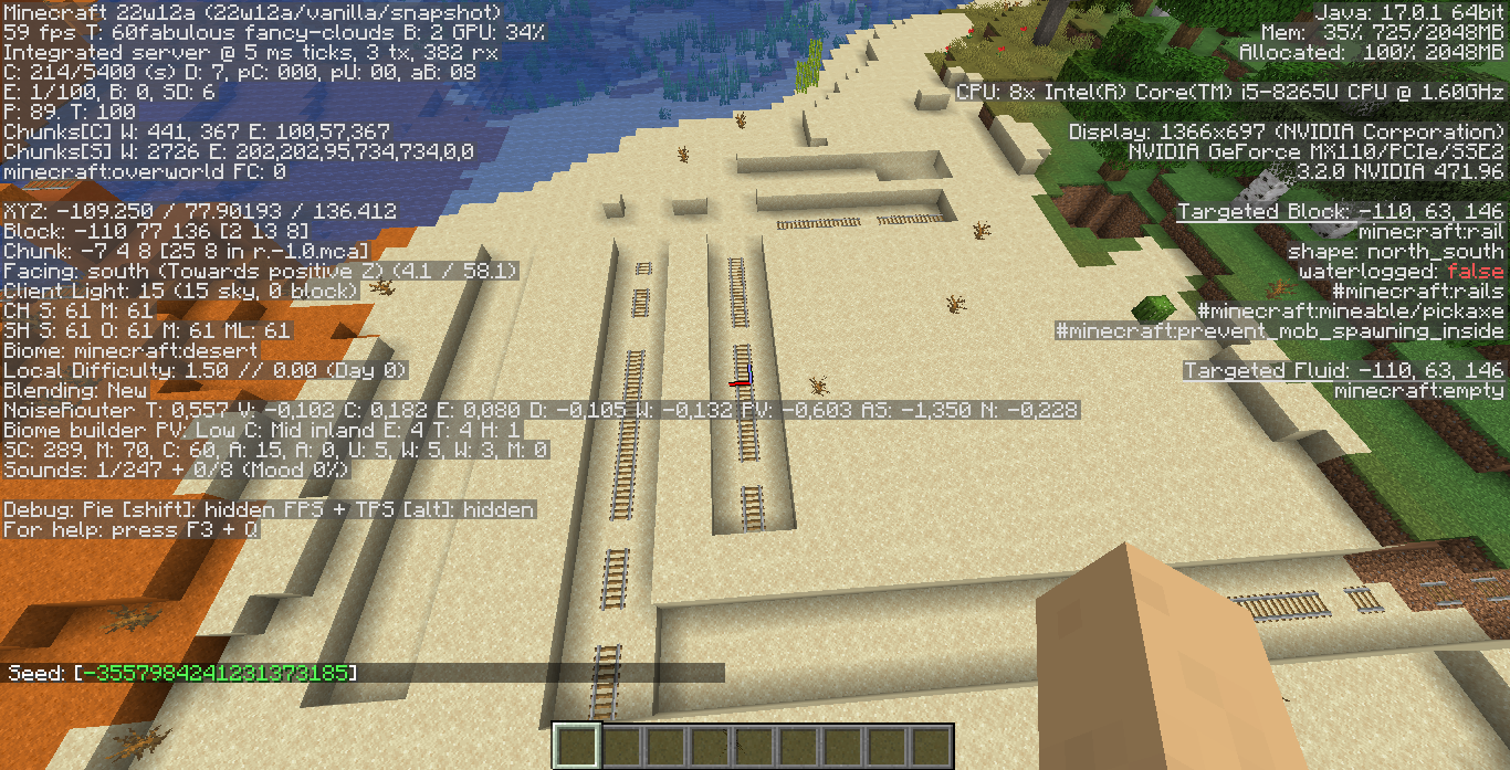 Coordinates: /execute in minecraft:overworld run tp @s -109.25 77.90 136.41 4.05 58.05Steps to Reproduce: