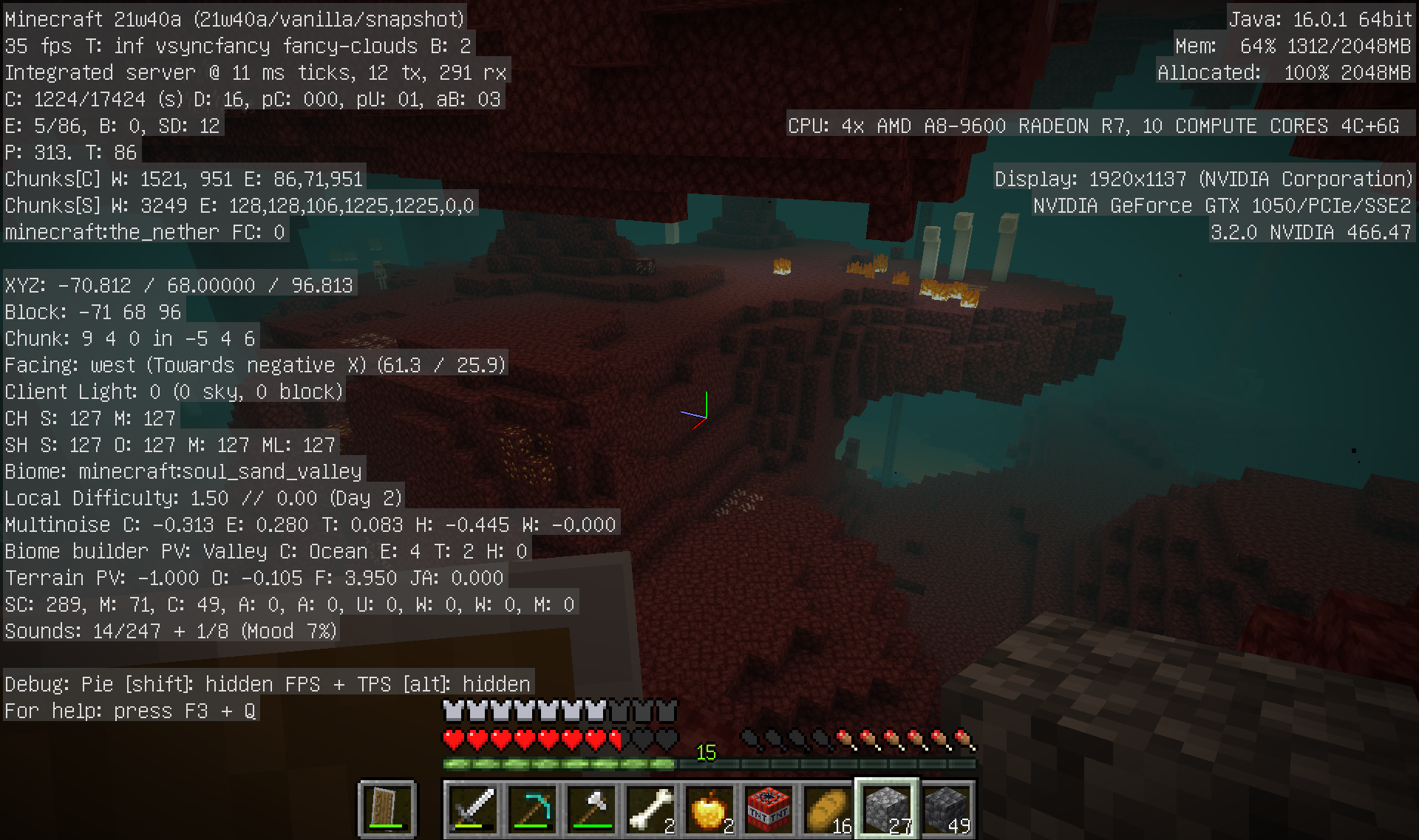 I started a new world in the new snapshot and upon entering the Nether, there is no soul sand in soul sand valleys. However, Ghasts still spawn, those bone structures still generate, and it still has that blue fog.
