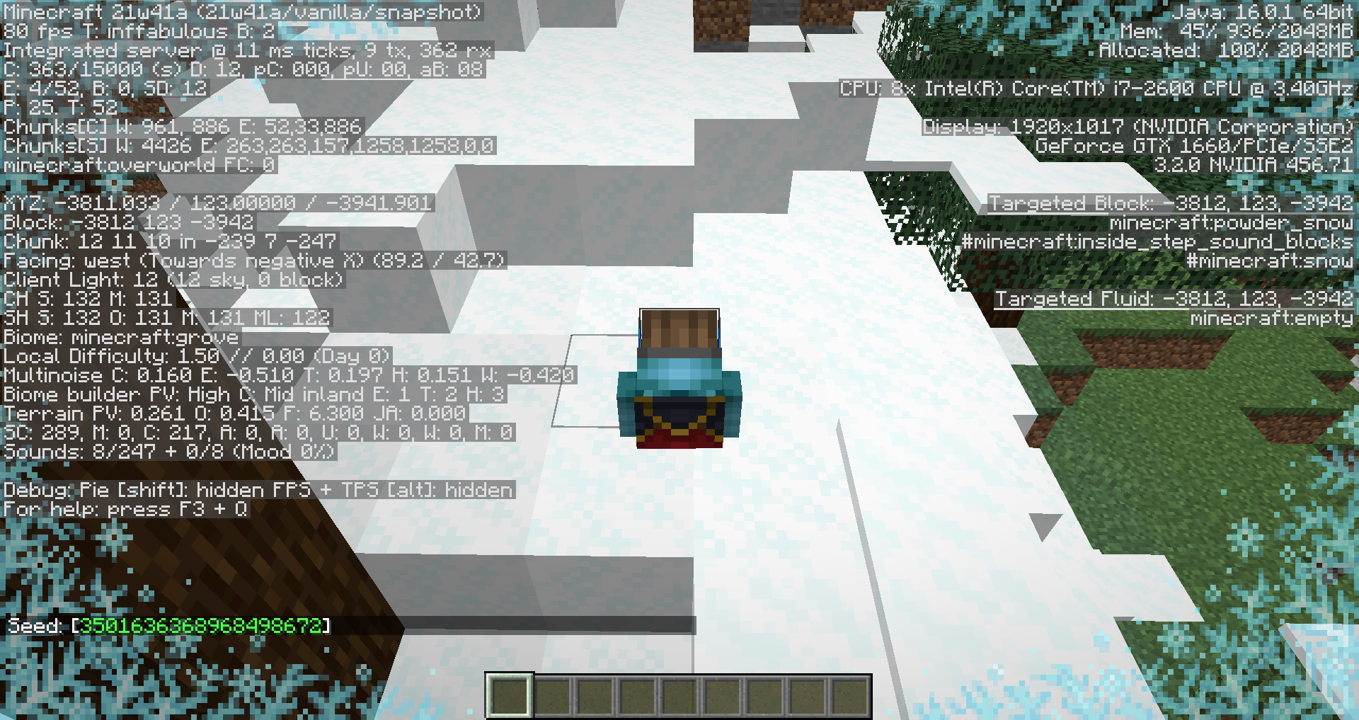 I have found small powder snow patches being exposed to the surface both in the previous snapshot and in 21w41a.