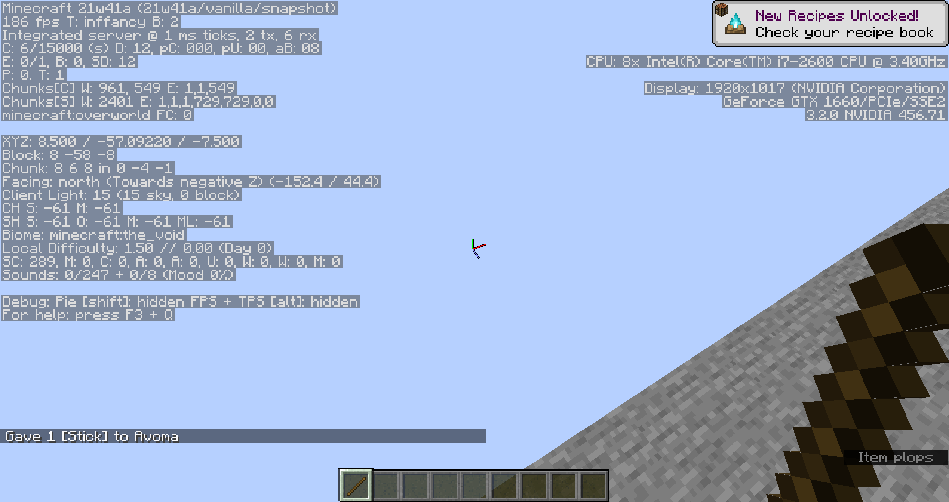 If we look at the above class, we can see that upon obtaining a stick, you are awarded the soul campfire recipe. This is evident through the following line of code: