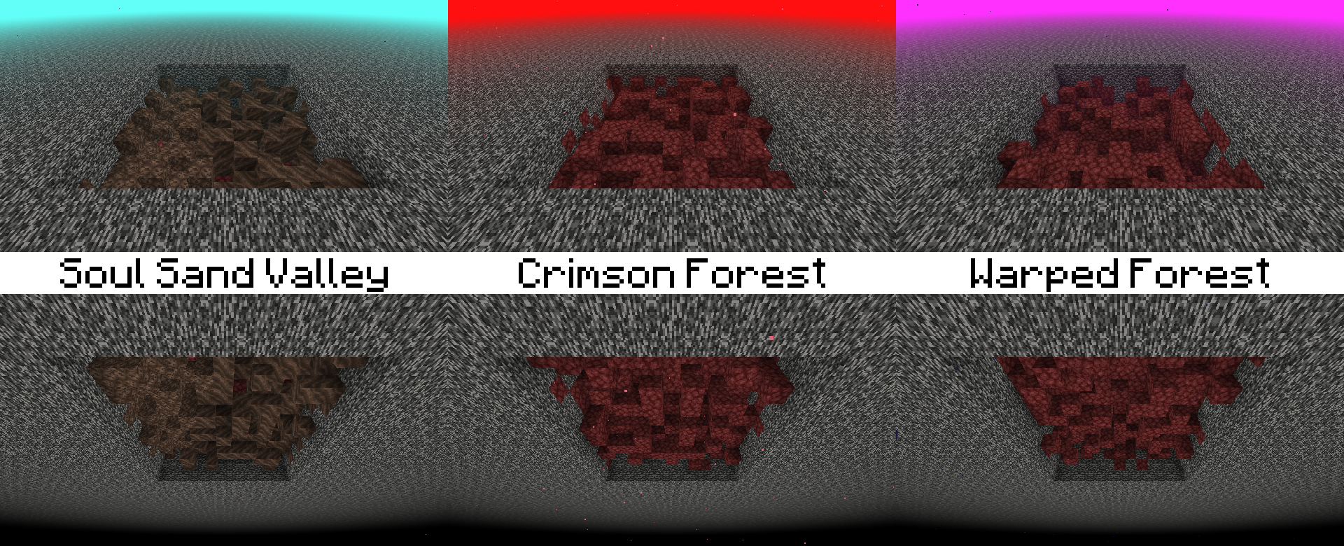*Nylium no longer generate below the ceiling, but Soul Sand and Soul Soil still generating (and at the bottom as well)