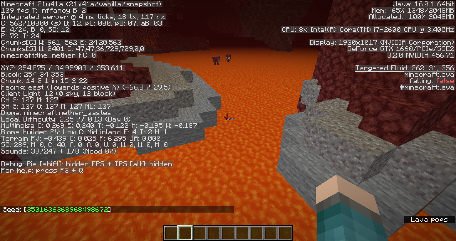 I was traversing the nether in a world I had previously played on 1.17. After moving it to 21w41a, I noticed normal stone blocks in the nether, and these were new chunks that had just generated.