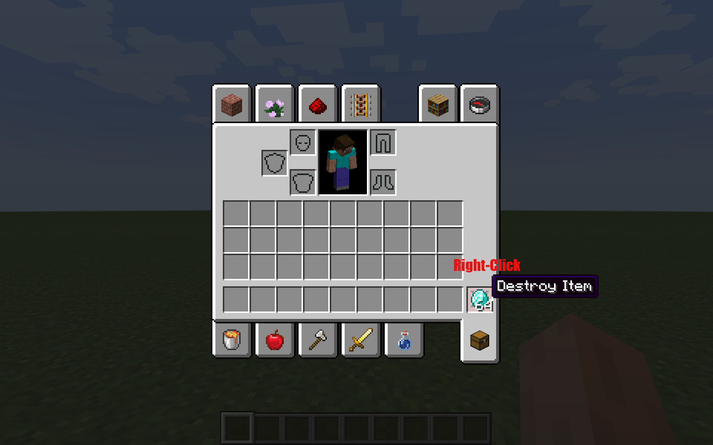 3. Hover the stack over the Destroy Item (red X) slot in the Survival Inventory tab.