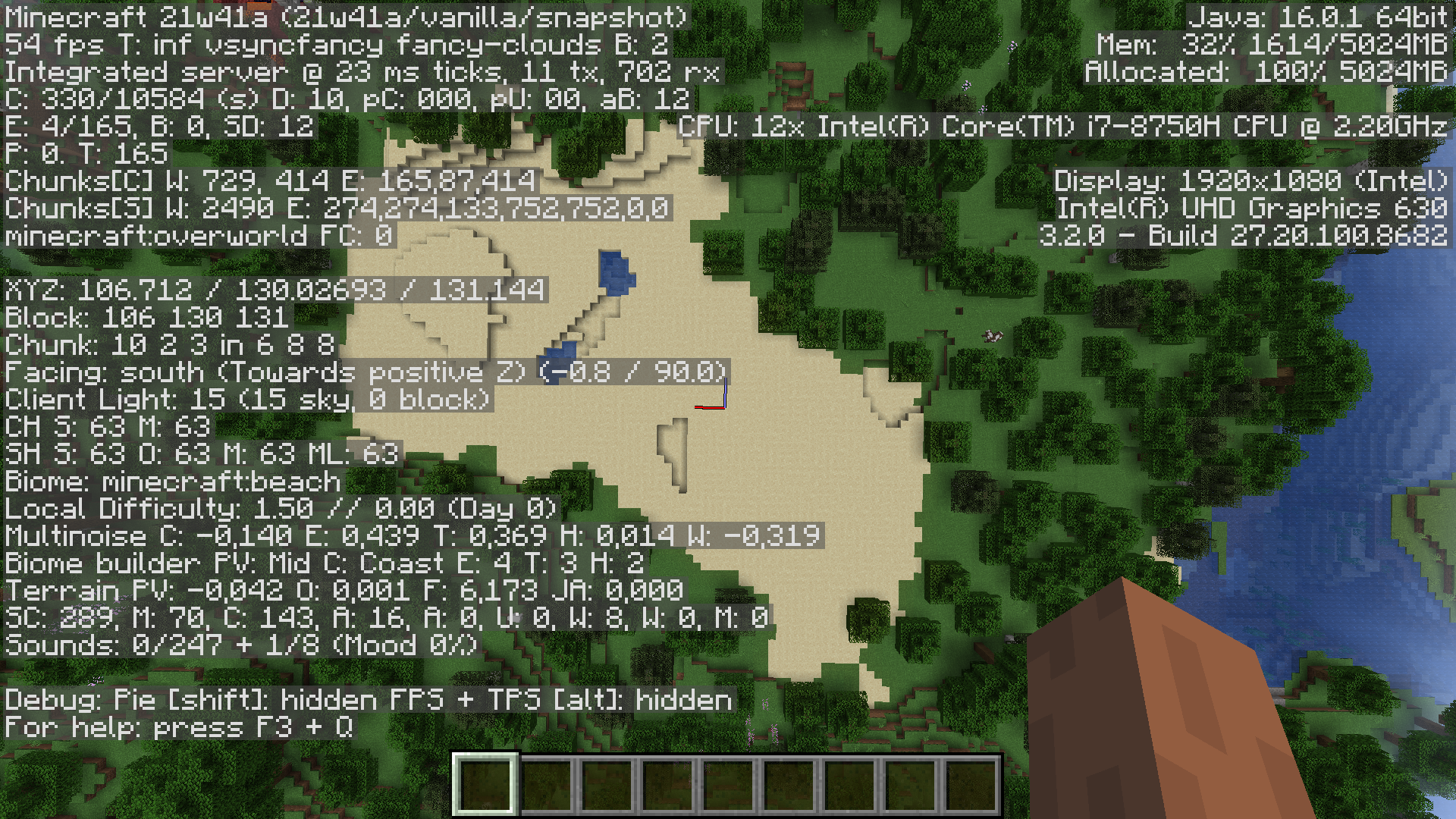 Observed Result: The Beach biome generated in a middle of Forest biome.