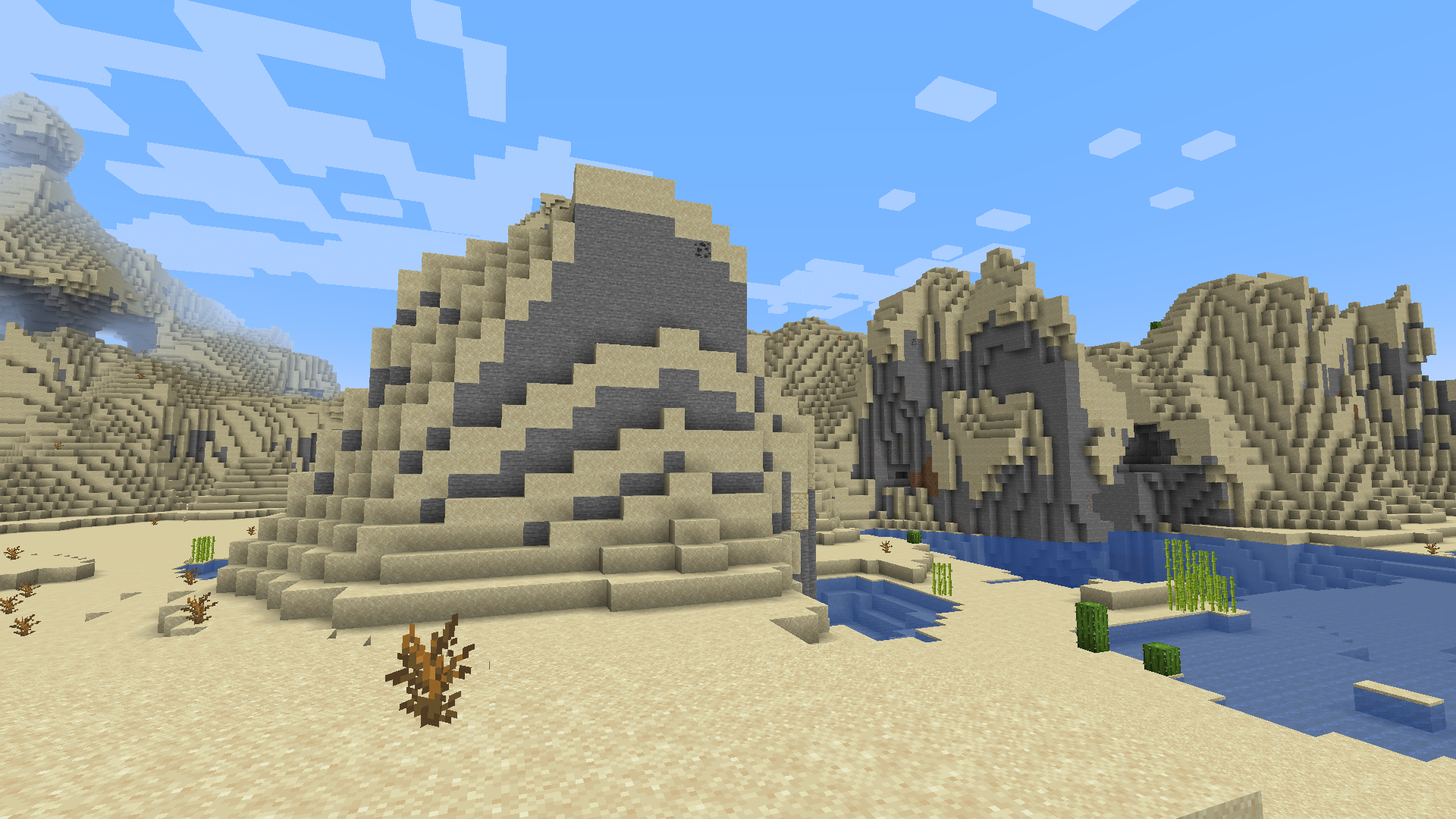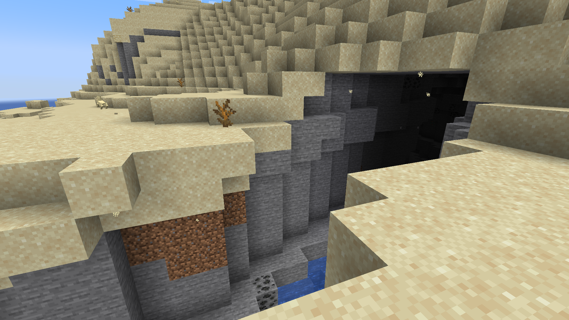 Deserts in 21w37-41a (all 1.18 snapshots) generate with little to no sandstone between sand and stone. This often leads to mountains and even just hills with large amounts of exposed stone under the ~3-block sand layer.